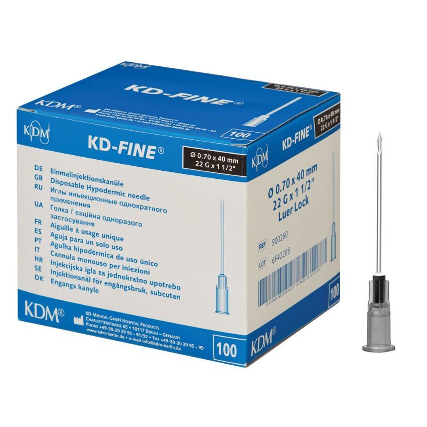 Иглы инъекционные KDM, G22 0,7 x 40 мм, 100 шт., производство Германия.