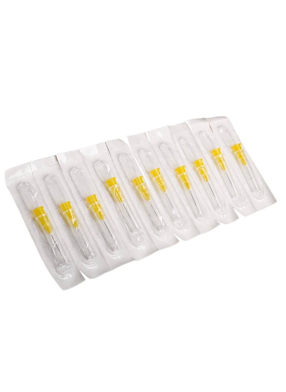 Упаковка 100 штук, упакованы в коробку, каждая игла находится в индивидуальной упаковке. Стерильно, апирогенно, нетоксично.