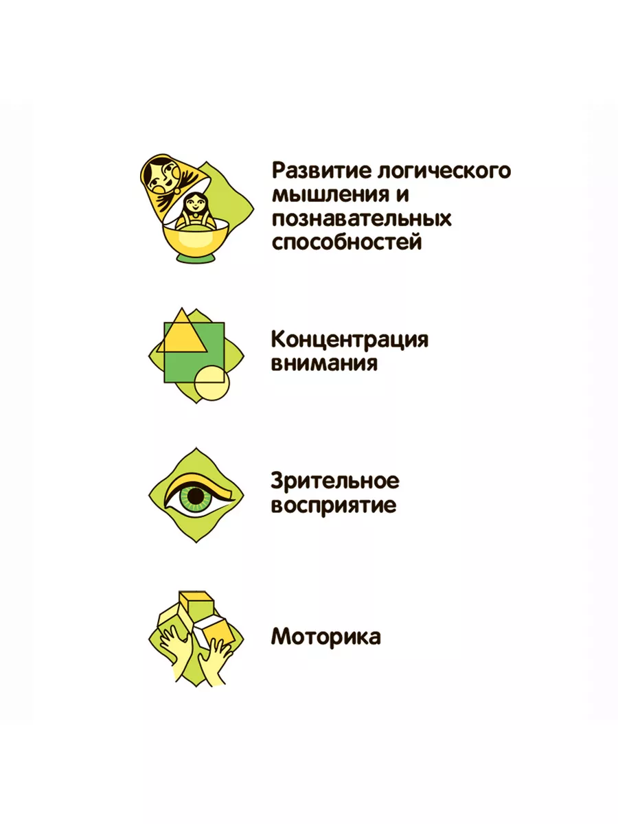 Тренируемые навыки Логическое мышление внимание память; Усидчивость и интеллект