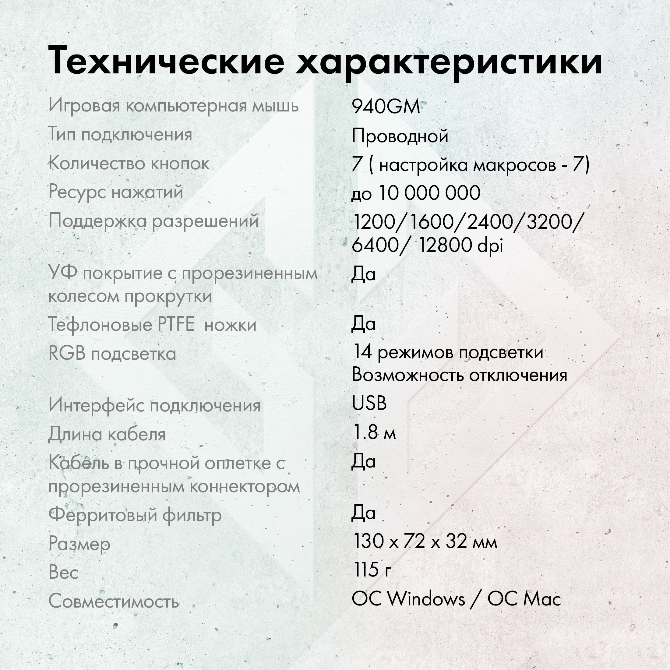 Особенности: Позолоченный USB-штекер, Матерчатая оплетка кабеля, Программируемые кнопки, Эргономичная конструкция, Тефлоновые ножки
