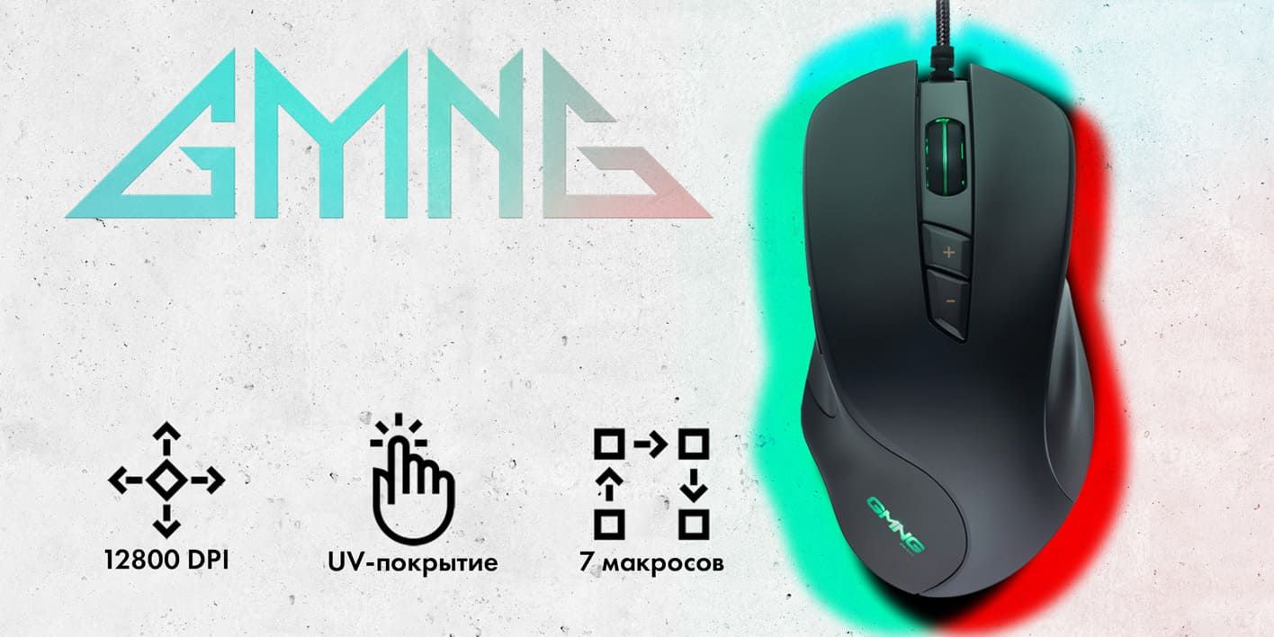 Игровая компьютерная мышь GMNG 940GM с подсветкой, оптическая, 12800 dpi, проводная, 7 кнопок, черная