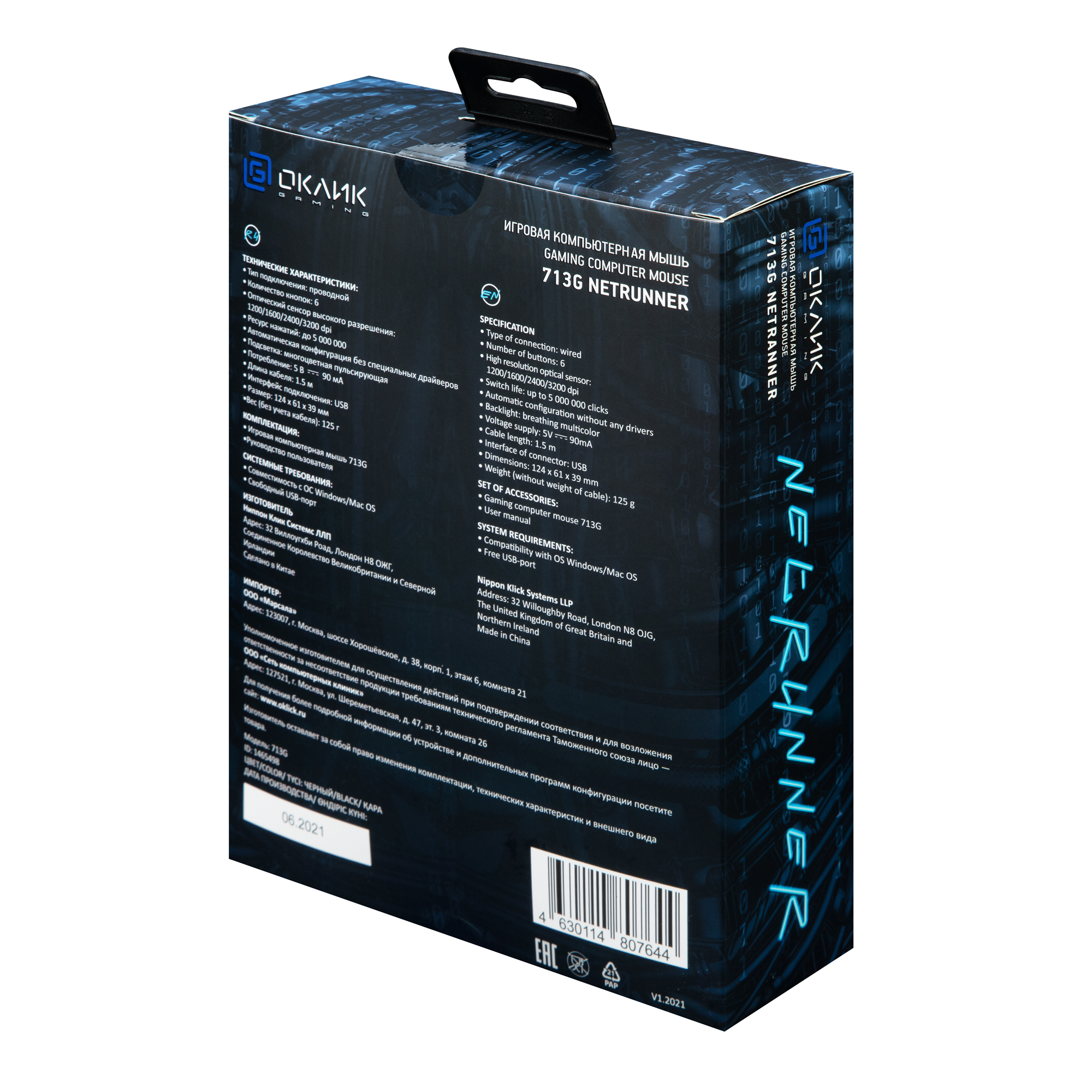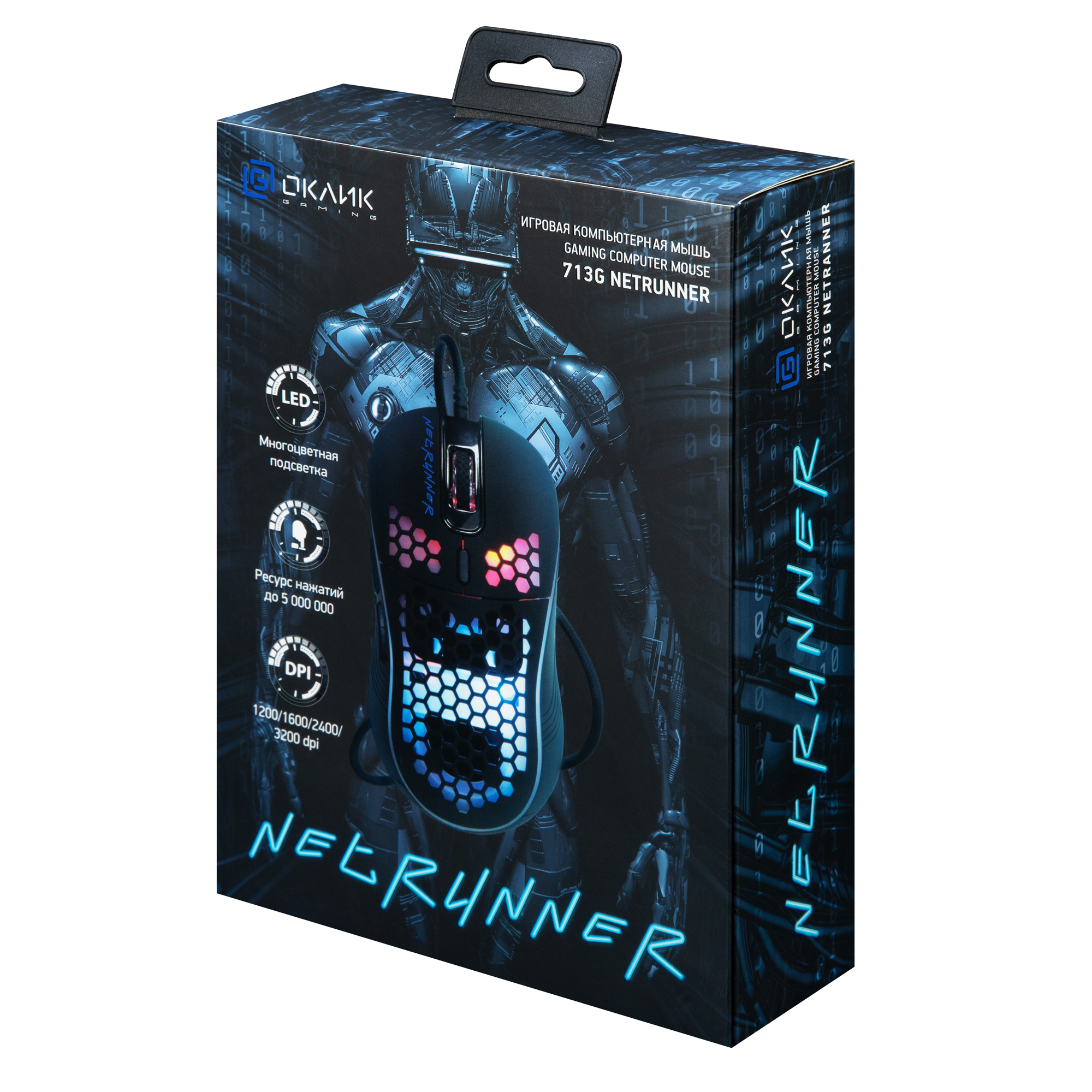 Игровая компьютерная мышь Оклик 713G NETRUNNER с подсветкой, оптическая, 3200 dpi, проводная, 6 кнопок, черная