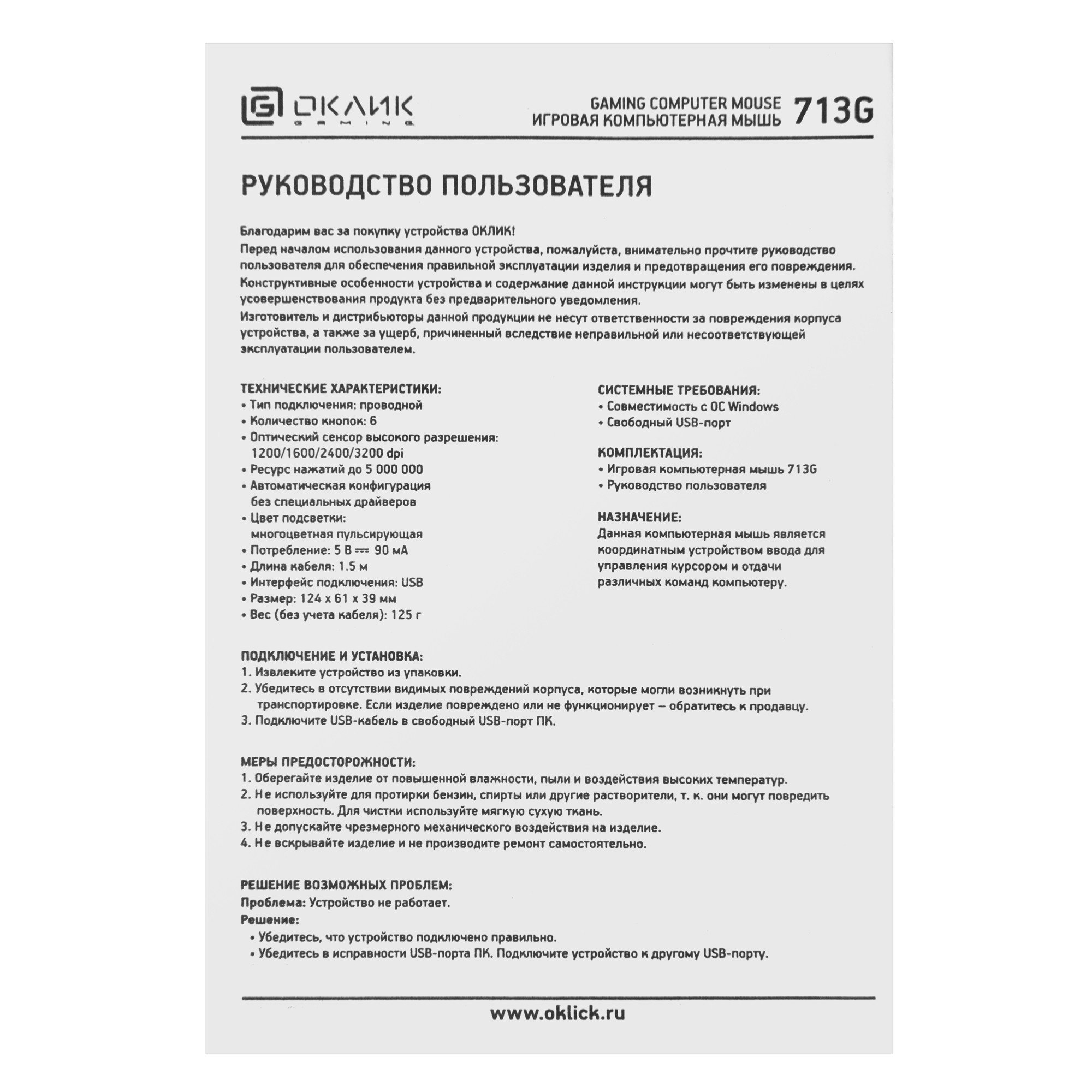 Игровая компьютерная мышь 713G; Руководство пользователя