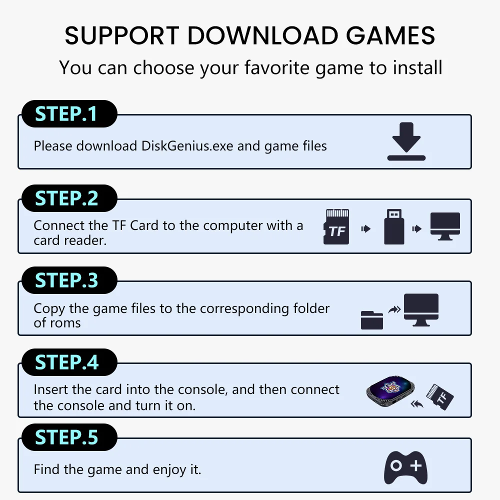 Идеально работает более 50 эмуляторов, таких как PSP/N64/DC/PS1, а также может работать с SS, оснащенным картой 64G/128G/256G, предустановленные игры 29000 +/34000 +/43000 +, включая массивные игры 3Д, подключи и играй.