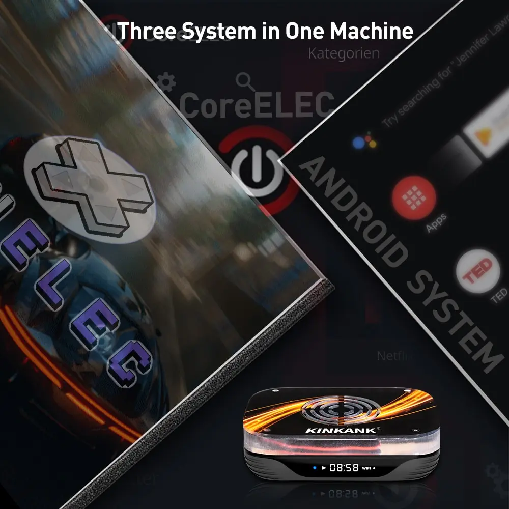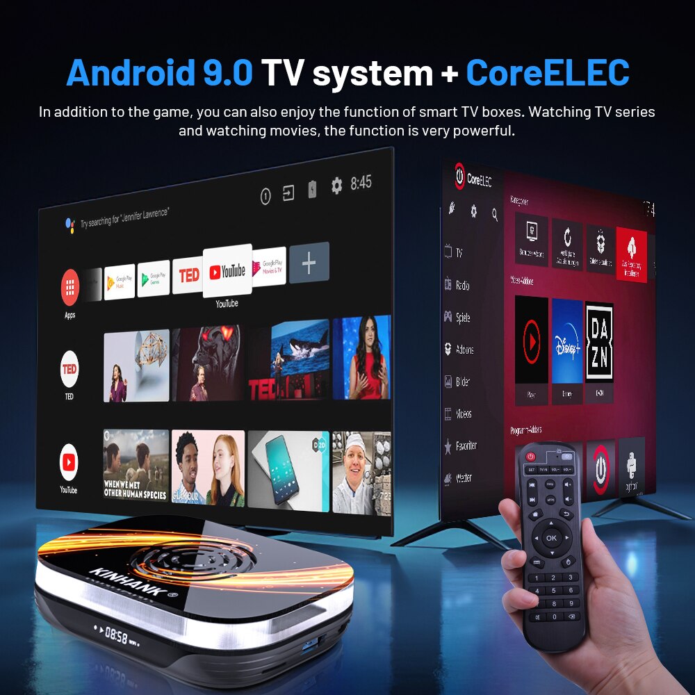 Super Console X3 Plus-это новейшая трехсистемная игровая консоль + TV BOX, которая объединяет игровую систему EmuELEC 4,6, Android и аудиосистему высокой четкости CoreELEC.