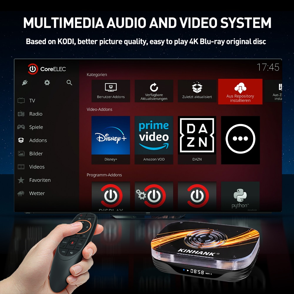 Аудио-и Видеосистема CoreELEC может плавно воспроизводить видео, а также можно плавно воспроизводить 10-битные видео с высокой скоростью 4K 60 кадров в секунду: Lord of The Rings и другие 4K UHD BD-Remux.