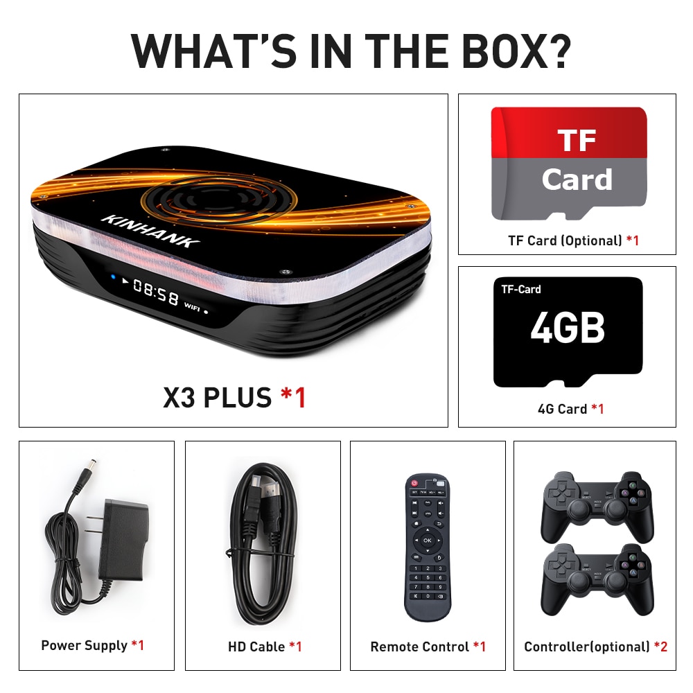 Новейшая ретро-видеоконсоль поставляется с обновленной высокоскоростной Флэш-памятью 4 ГБ/32 ГБ, что обеспечивает двойную производительность хранилища. Расширенная емкость 4G RAM + 32G ROM обеспечивает скорость и стабильность операционной системы, а также позволяет вам больше места для загрузки ваших любимых фильмов.
