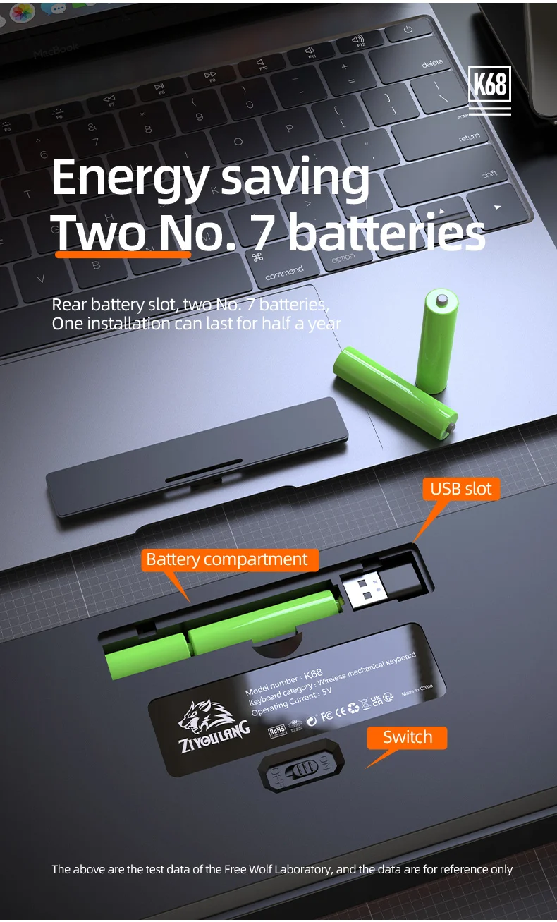 Название продукта: 68-клавишная двойная mode2.4G + BT5.0 Беспроводная механическая клавиатура