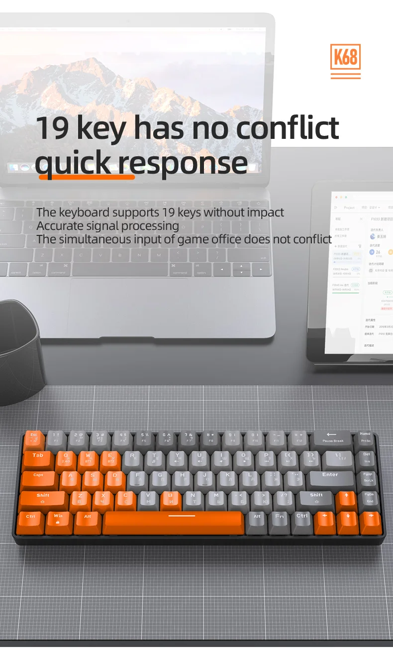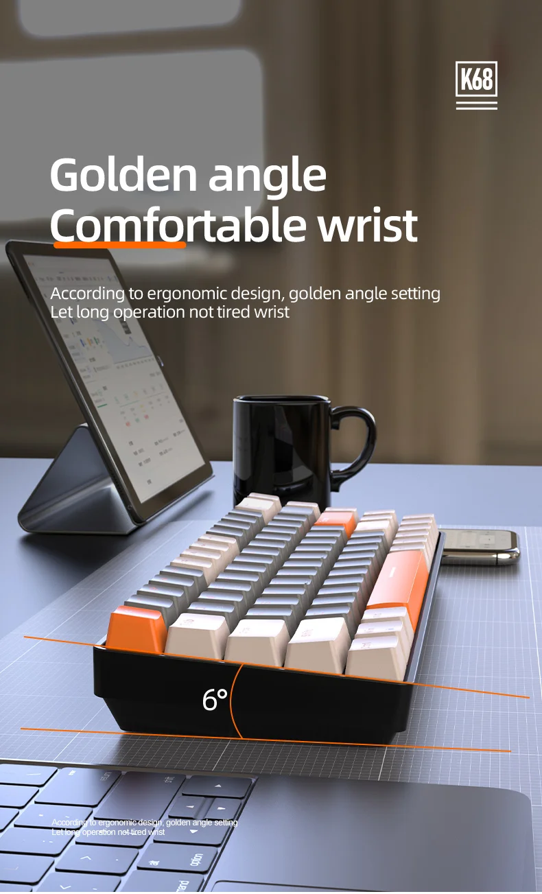 Игровая механическая мини-клавиатура K68, беспроводная клавиатура BT 2,4 5,0 ГГц для ПК, геймерские колпачки, клавиши с горячей заменой, 68 клавиш, Русская раскладка