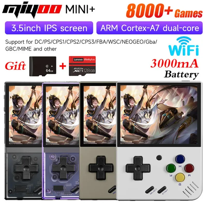 Miyoo Mini Plus Портативная игровая консоль 3,5-дюймовый экран IPS Игровая консоль Видеоплеер 3000 мАч WiFi с картой 64 ГБ 8000 игр Рождественские подарки на день рождения