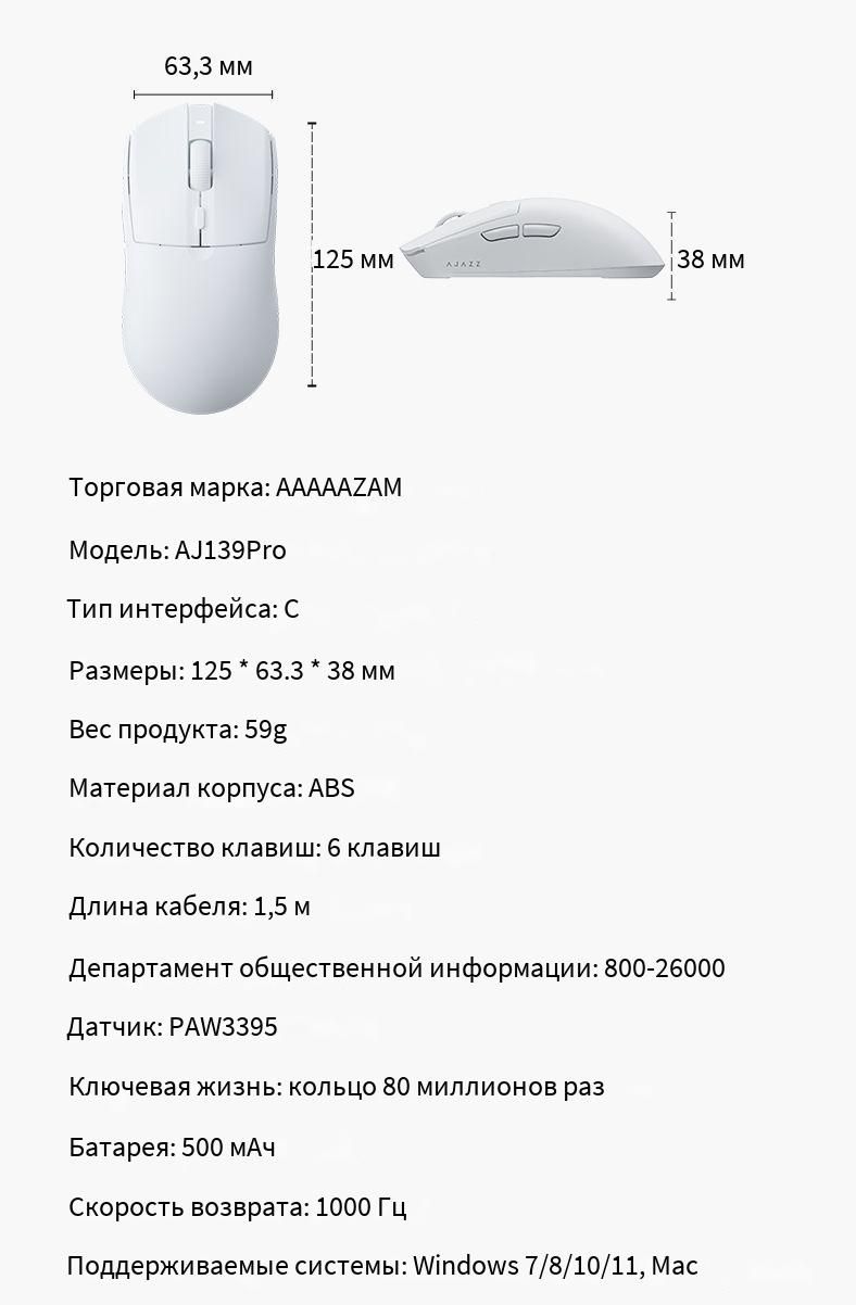 Описание: Использование легкого дизайна, оптимизация общей структуры, средняя балансировка центра тяжести мыши, совместимость с различными позициями захвата, улучшение опыта управления