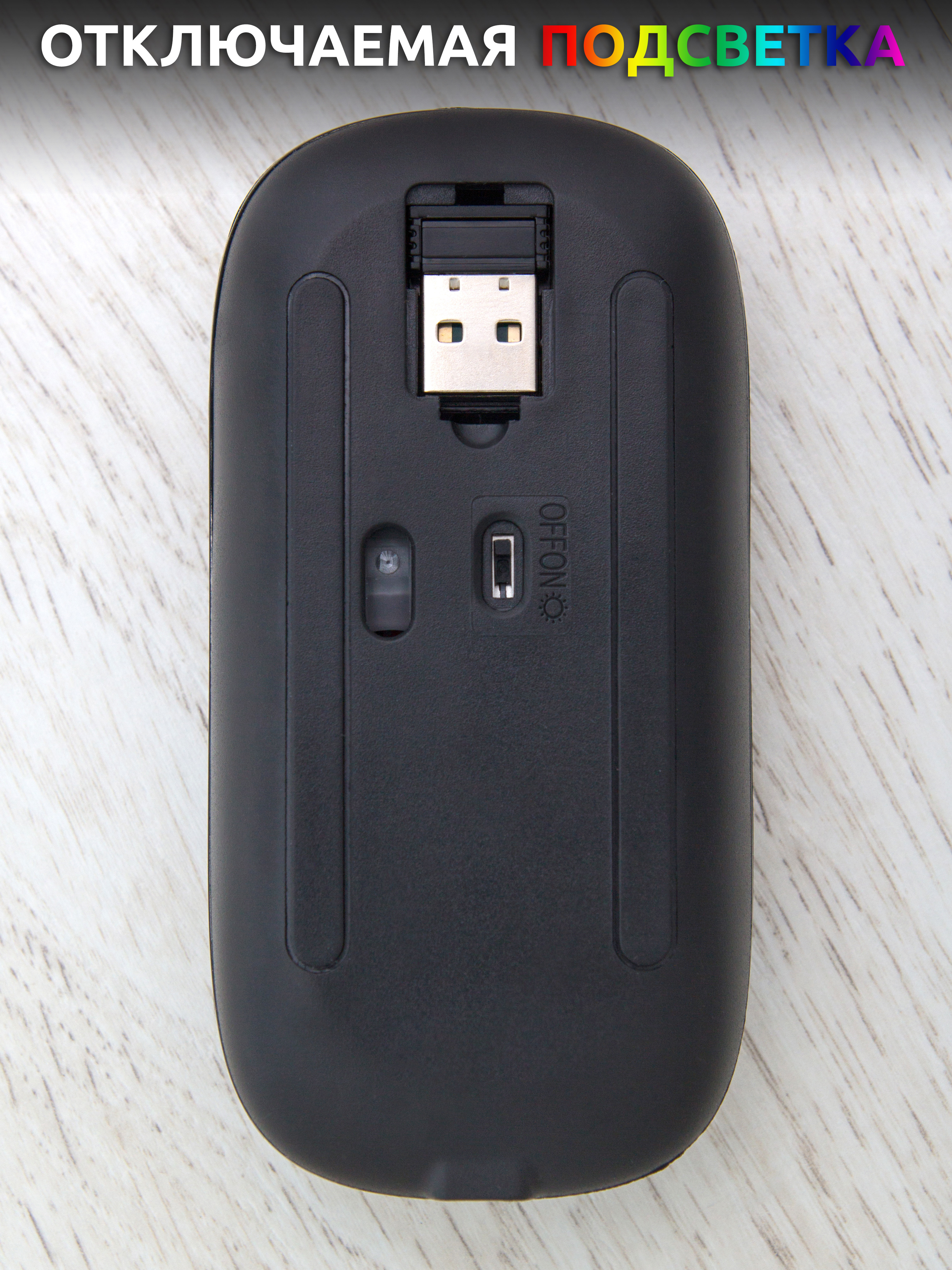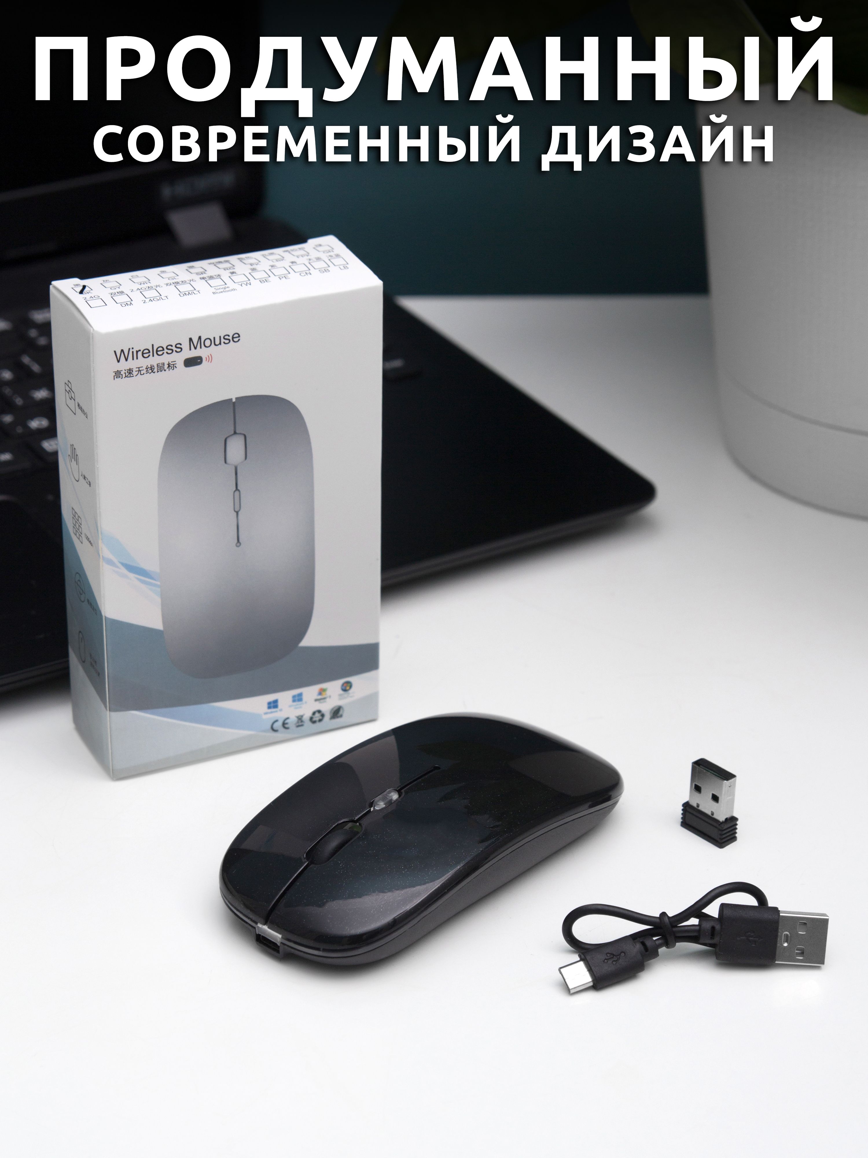 Беспроводная мышь, Usb-приемник, Зарядный кабель.