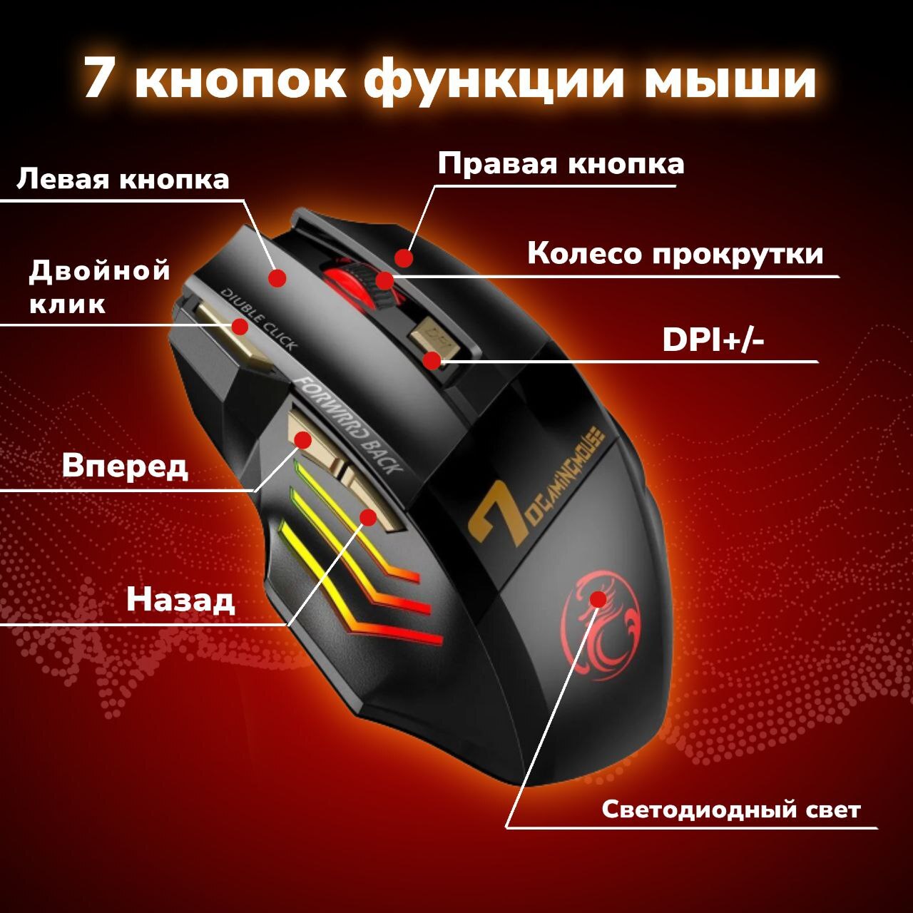 • Мышка с подсветкой беспроводная автоматически переходит в спящий режим после 3 минут бездействия для экономии энергии и снова активируется при осторожном перемещении