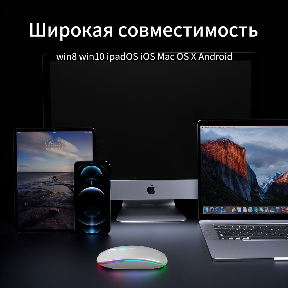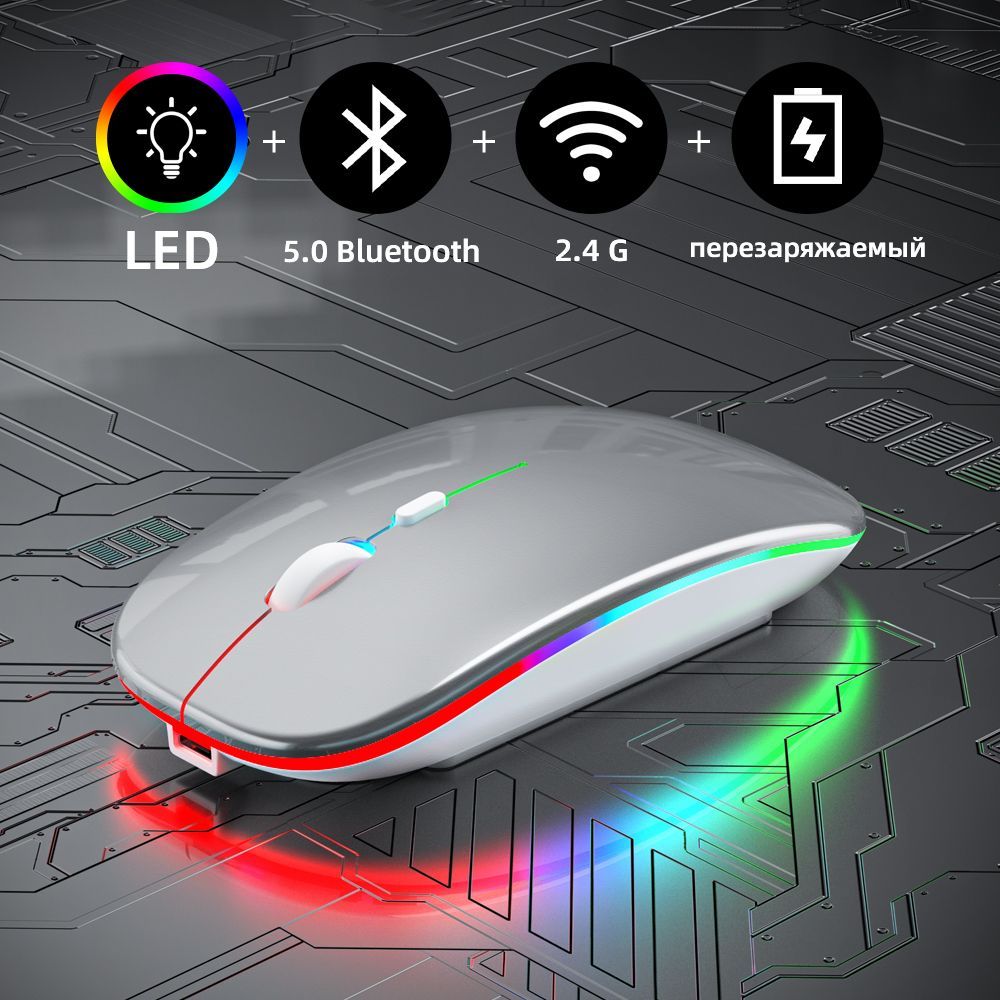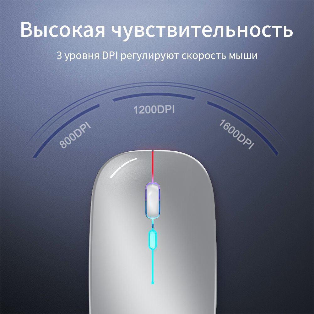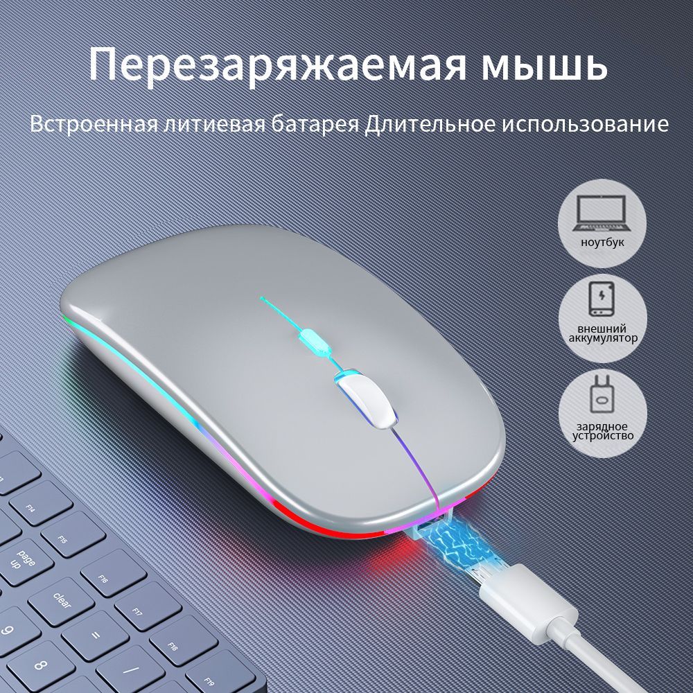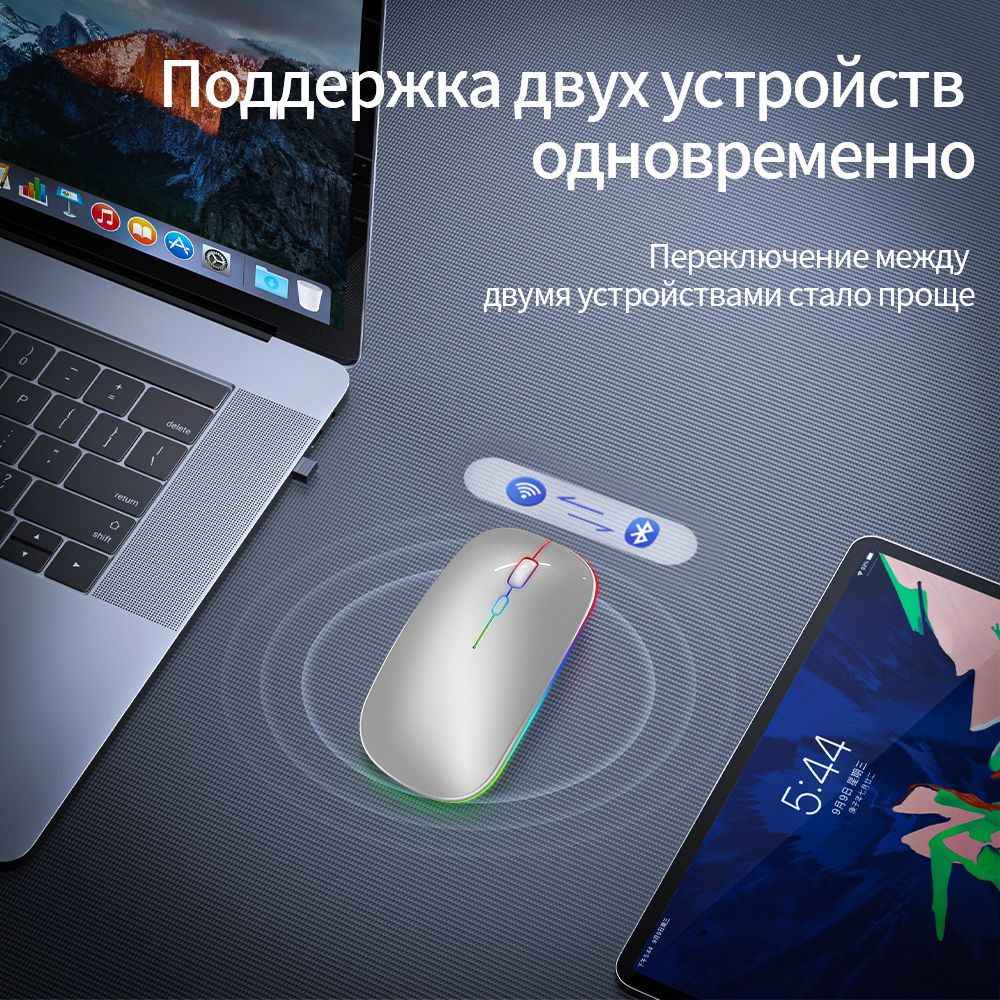 Игровая мышь беспроводная IMICE Bluetooth мышь беспроводная компьютерная мыш с подсветкой RGB бесшумная аккумуляторная Стройный USB блютуз мышей для ноутбука пк tv, телефона, планшета, серебристый