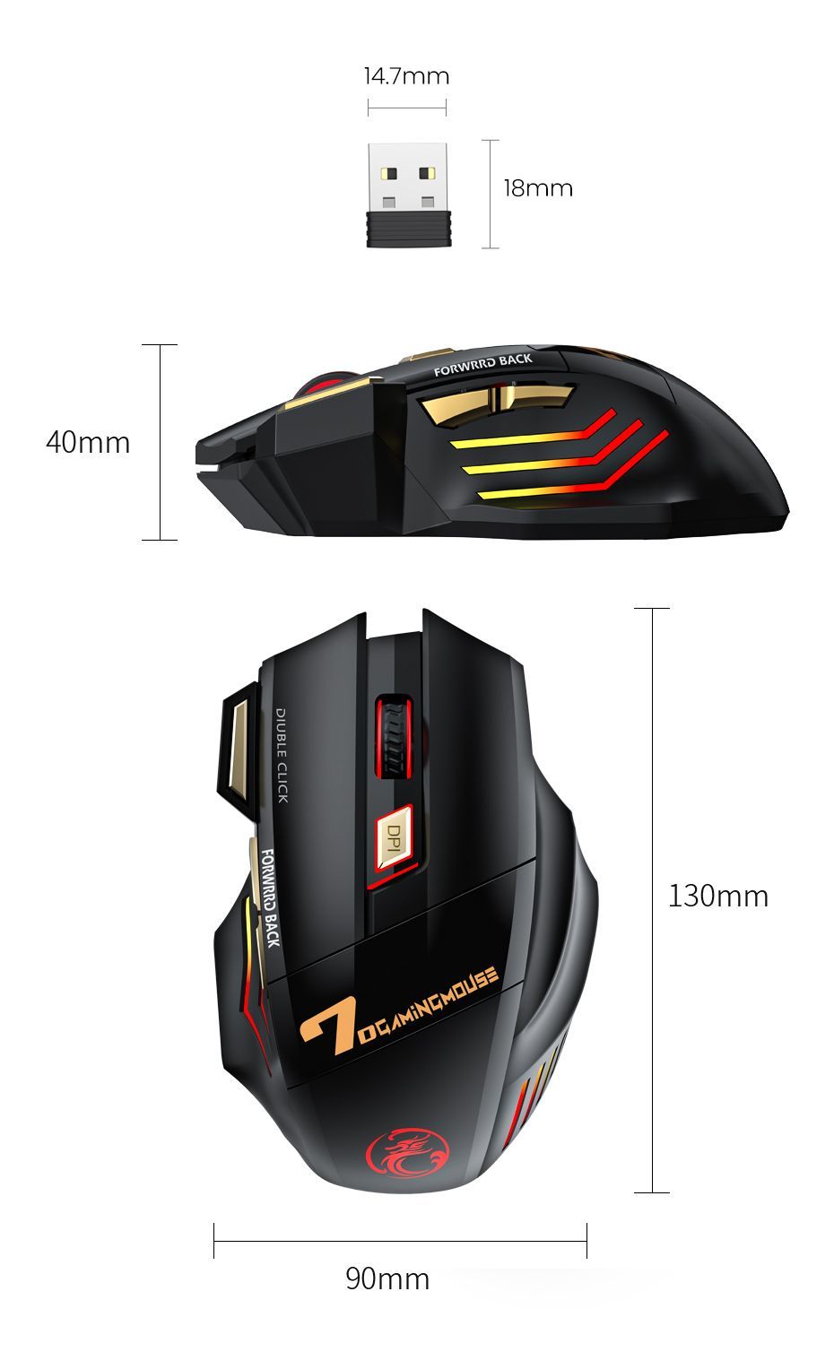 • 7-цветный дышащий свет RGBуникальный дизайн с потрескиванием молнии в сочетании с 7-цветным дышащим светодиодным светом, несколько цветов меняются автоматически, что подчеркивает атмосферу игры, особенно ночью. Обратите внимание, что светлый режим ускорит расход заряда батареи, выключайте свет, когда вы не используете мышь.