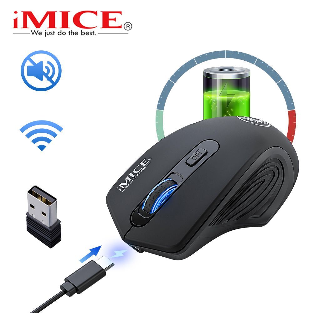 Игровая мышь беспроводная IMICE компьютерная мышь беспроводная ,бесшумная,аккумуляторная ,мышка для компьютера пк ноутбук, темно-серый