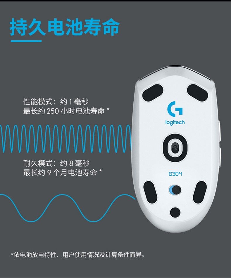 • 【Сверхдлинный Срок службы батареи 】 Датчик героя и беспроводная LIGHTSPEED обеспечивают экстремальную эффективность, чтобы вы могли играть в течение нескольких месяцев. Он обеспечивает до 250 часов работы на одной батарее AA. Его можно отрегулировать до 9 месяцев обычного использования в режиме выносливости, который можно выбрать с помощью игрового программного обеспечения Logitech. Протестировано на игровой коврик для мыши Logitech G240, а также светильник индикатора на G304, уведомит вас, когда останется 15% батареи.