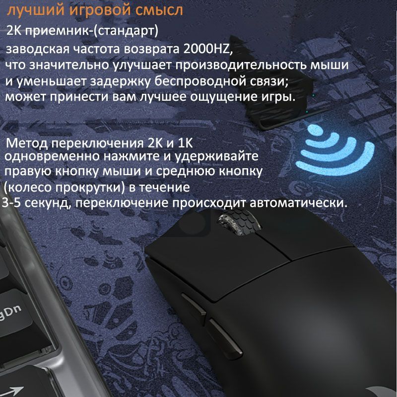 Для достижения наилучшего качества беспроводной связи рекомендуется разместить приемник 2K на 10 см ближе к мыши, чтобы уменьшить задержку и помехи для сигнала.