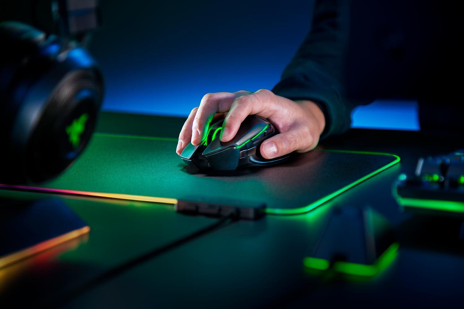 Беспроводная игровая мышь Razer Basilisk Ultimate легко адаптируется к вашим предпочтениям. Запустив приложение Synapse 3, вы можете выбрать нужную команду для каждой из 11 программируемых кнопок, а также отрегулировать уровень чувствительности сенсора. Программа позволяет настраивать 14 зон подсветки независимо друг от друга, создавая собственный стиль.