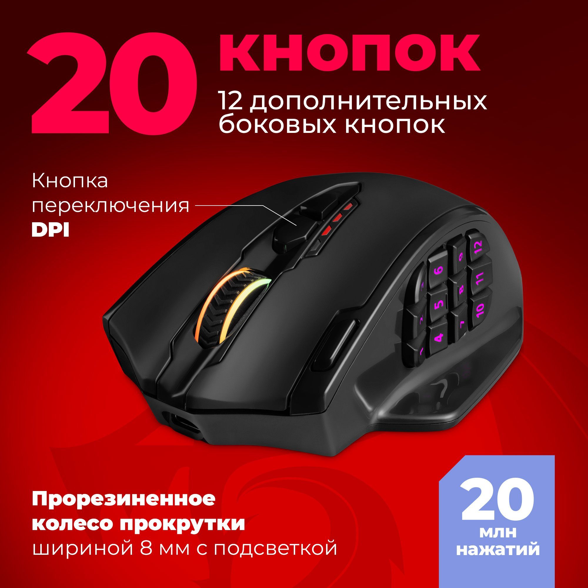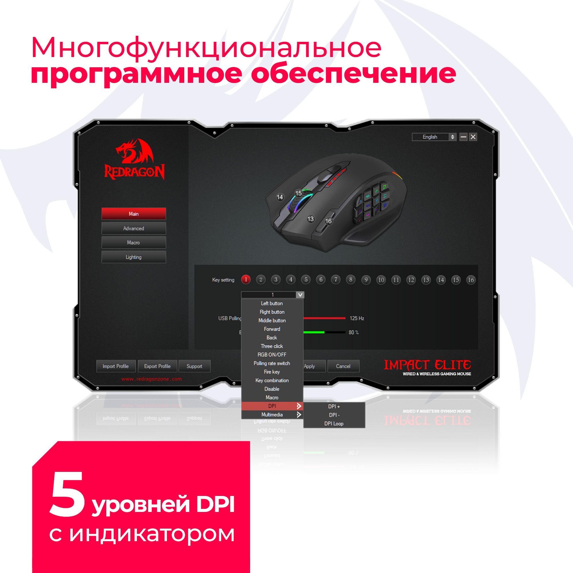 Игровая мышь беспроводная Redragon Impact Elite 20 кнопок 16000 dpi