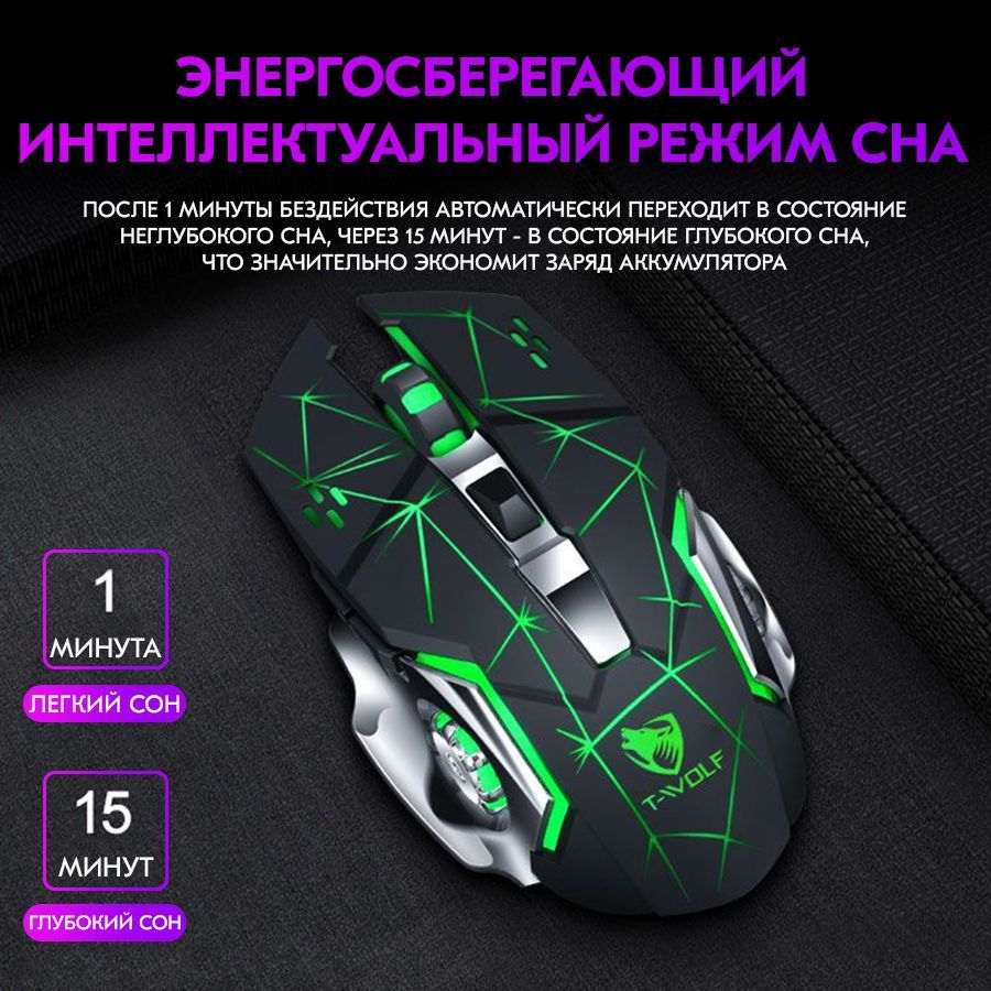 Игровая компьютерная мышь с подсветкой использует интеллектуальную энергосберегающую технологию для экономии энергии, то есть подсветка автоматически запустится в спящий режим в течение 1 минуты и автоматически запустится в режим глубокого сна в течение 15 минут.