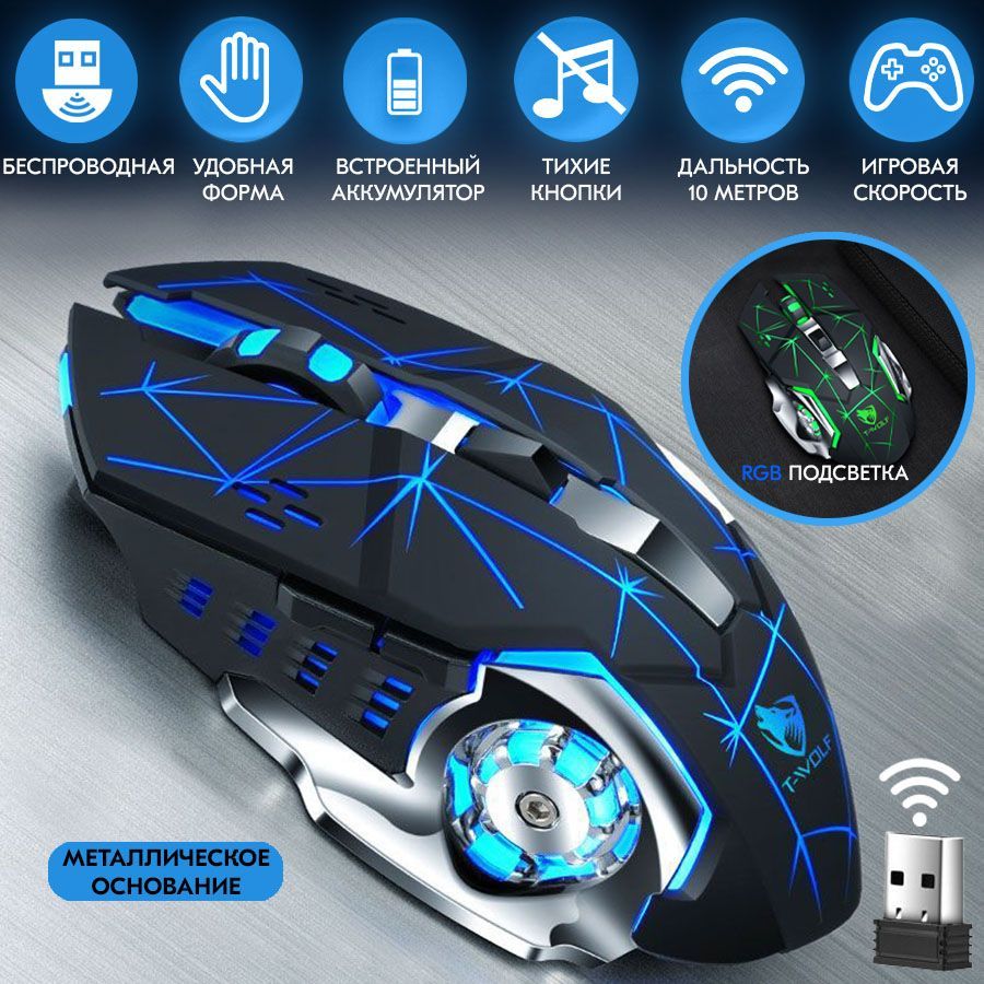 Игровая мышь беспроводная TIMKUCH mouseiron, черный, голубой
