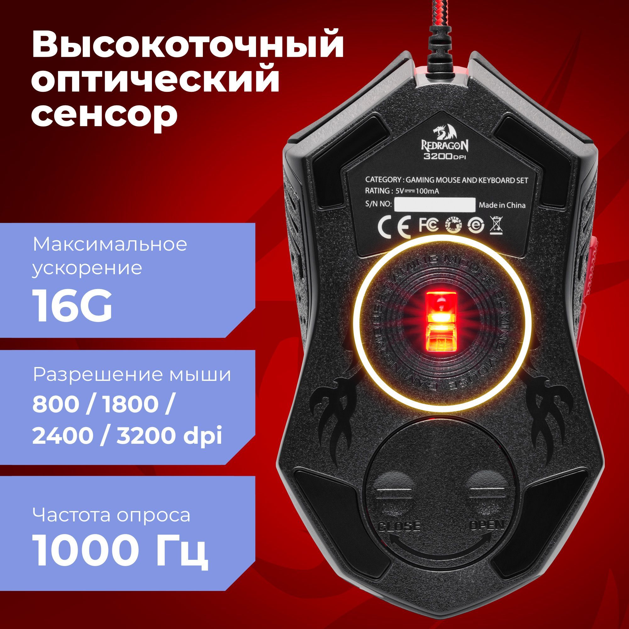 • 4 режима разрешения мыши 800/1800/2400/3200 dpi;