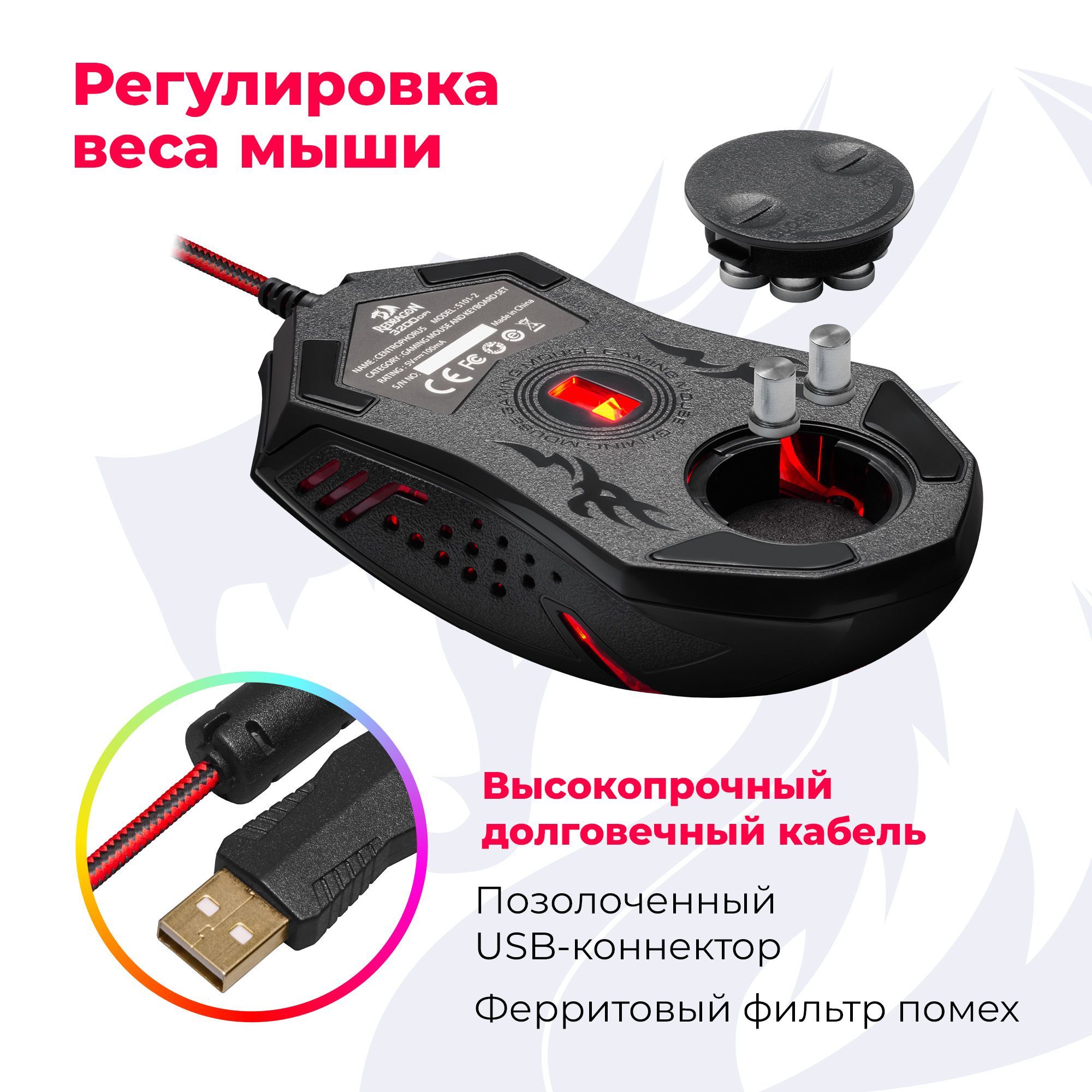 Игровая мышь + коврик Redragon Centrophorus 6 кнопок 3200 dpi