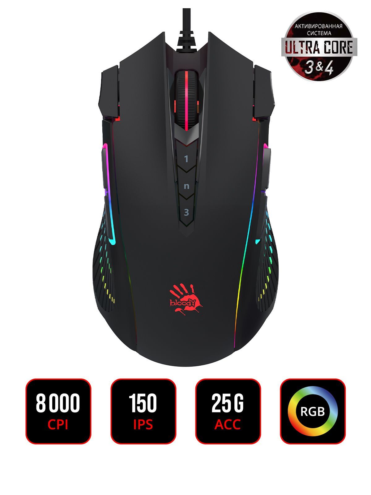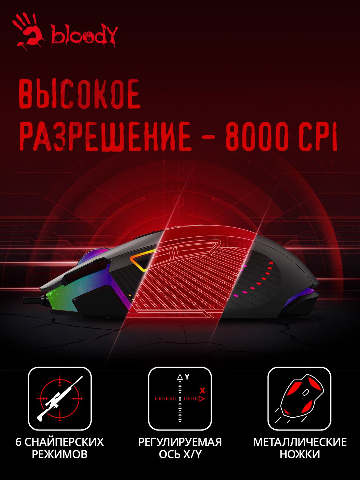 Игровая мышь проводная A4Tech Bloody J90s, 12 кнопок, подсветка, 8000 dpi