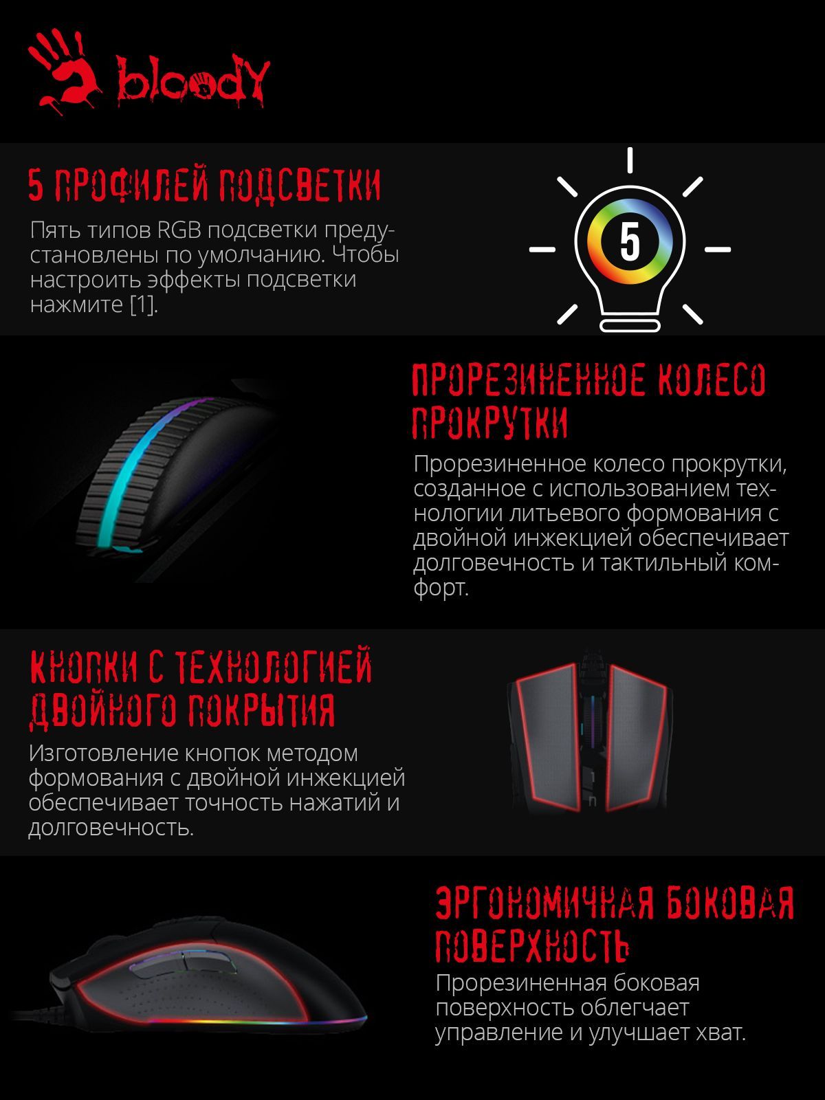Мыши Bloody созданы для того, чтобы дать вам преимущество в интенсивной игре. С их помощью вы можете реагировать быстрее и всегда быть на шаг впереди противников.