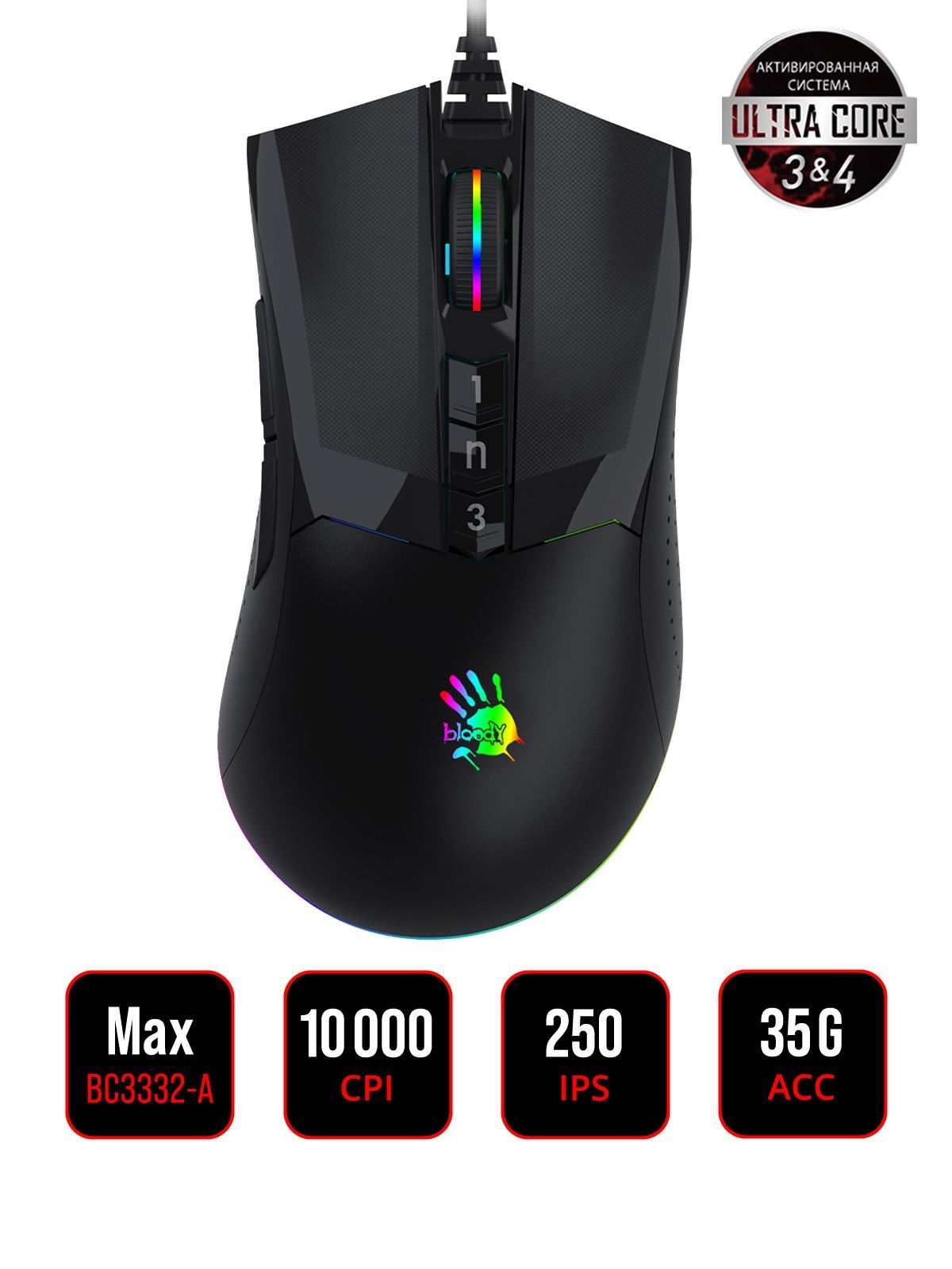Игровая мышь проводная A4Tech Bloody W90 Max, 10 кнопок, подсветка, 10000 dpi