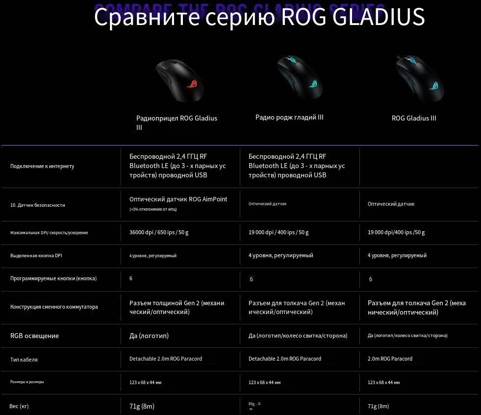Игровая мышь проводная, беспроводная ASUS ROG Gladius III Wireless, черный