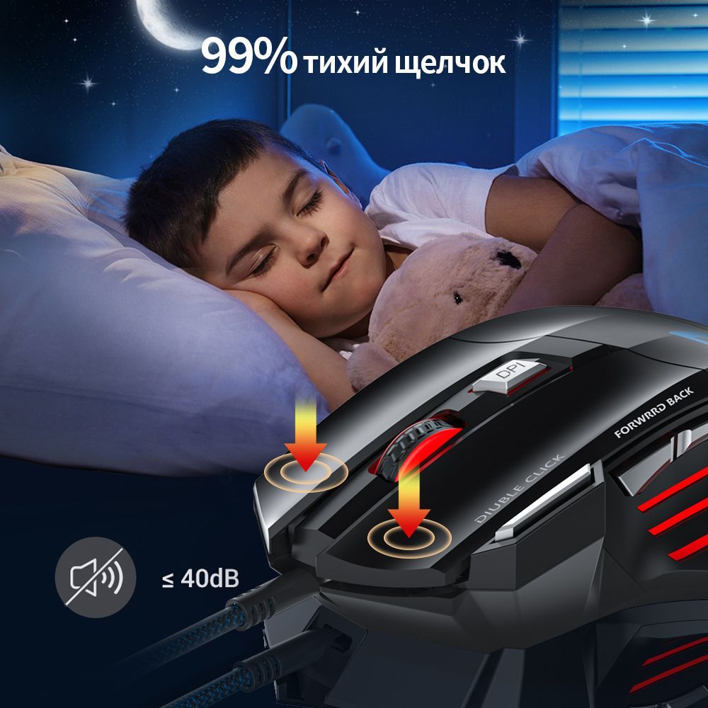 • Игровая мышь для ПК с RGB Подсветкойразличных режимов подсветки.Различные DPI соответствуют различным цветам, что позволяет вам иметь более идеальный опыт