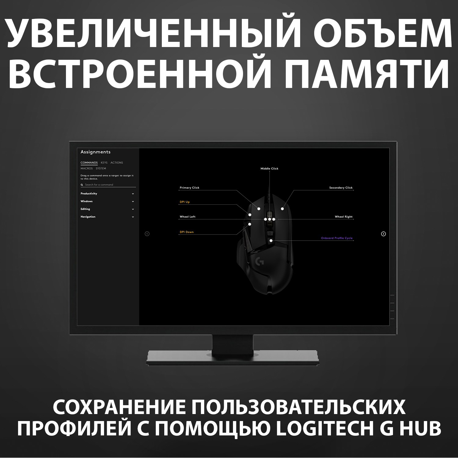 Описание: ВЫСОКОТОЧНАЯ ИГРОВАЯ МЫШЬ G502 HEROДАТЧИК HERO ПОЛУЧАЕТ НОВУЮ ЖИЗНЬМышь G502 HERO оснащена усовершенствованным оптическим датчиком для максимальной скорости отслеживания, настраиваемой RGB-подсветкой и съемными утяжелителями. Кроме того, она поддерживает функции создания пользовательских игровых профилей и переключения чувствительности (от 100 до 16 000 точек на дюйм).ДАТЧИК HERO 16K