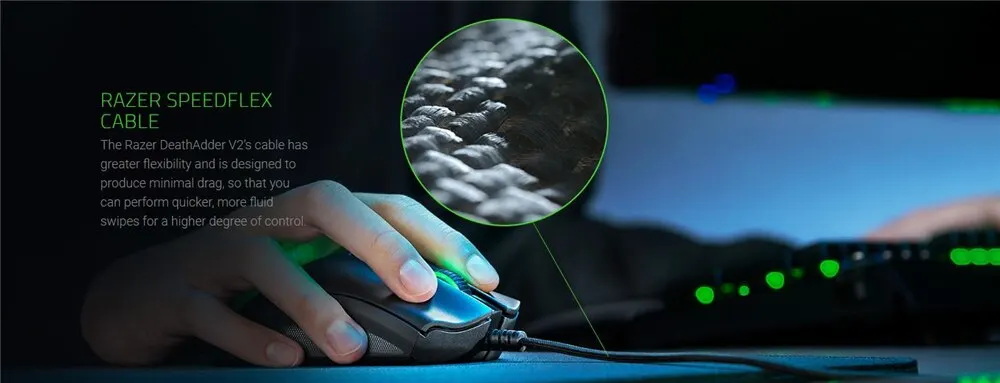 Кабель Razer DeathAdder V2 обладает большей гибкостью и разработан для обеспечения минимального сопротивления, так что вы можете выполнять более быстрые и плавные движения для более высокой степени контроля.