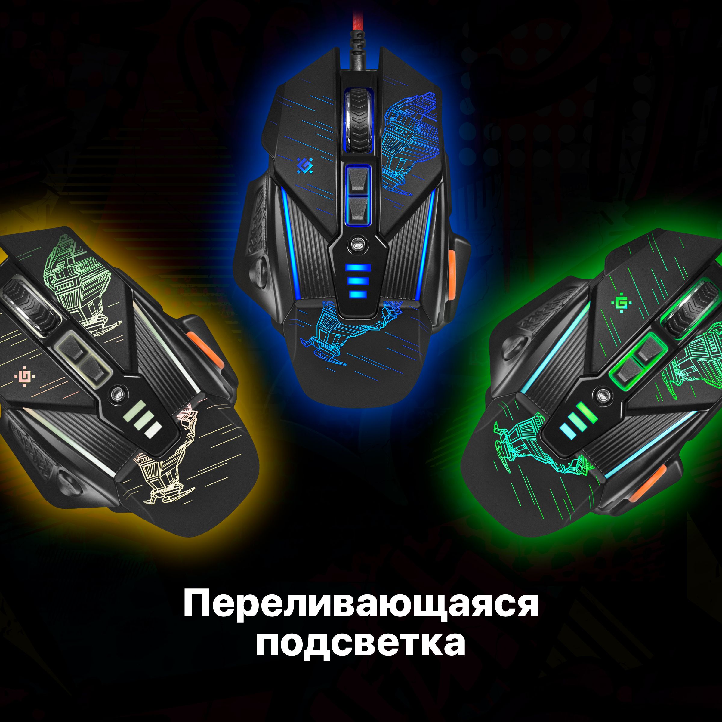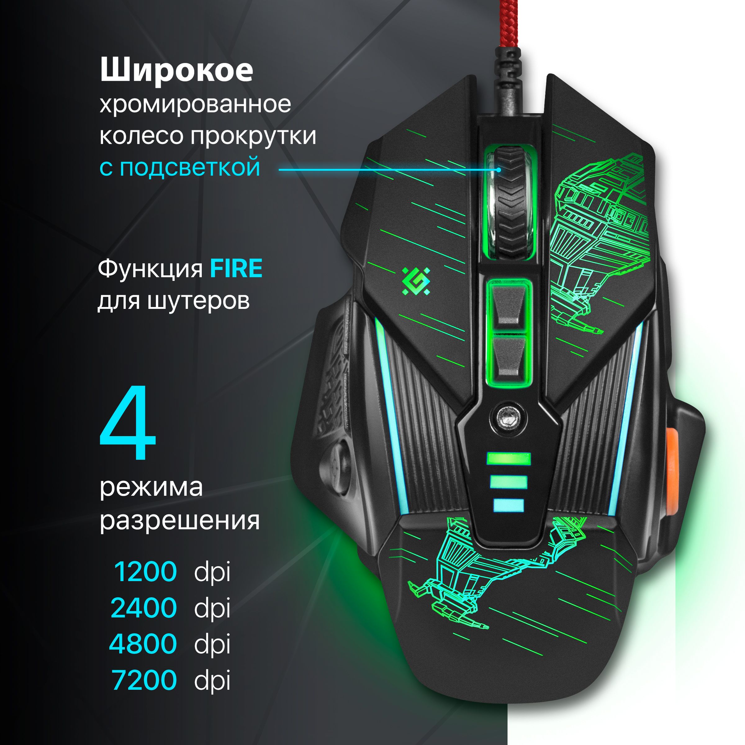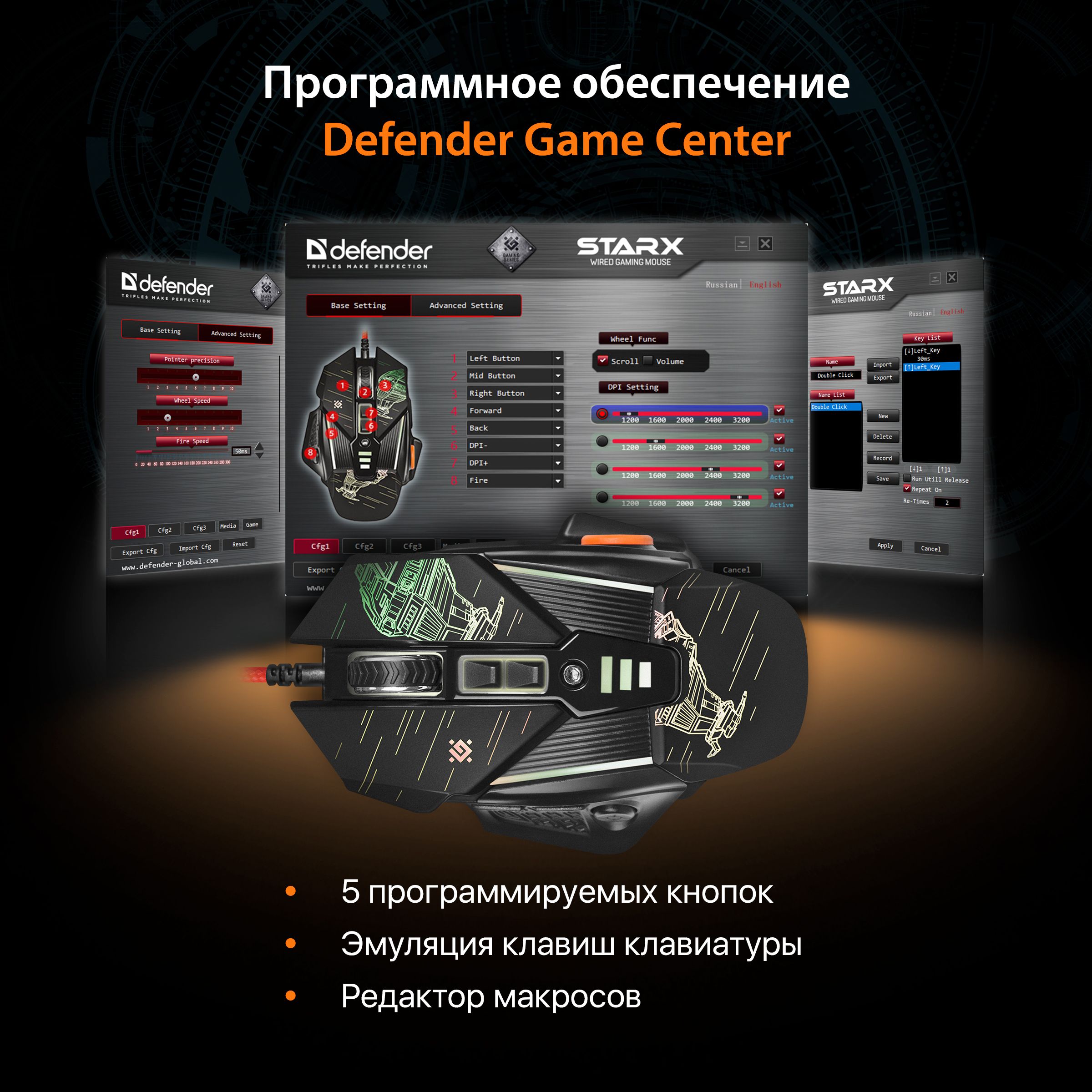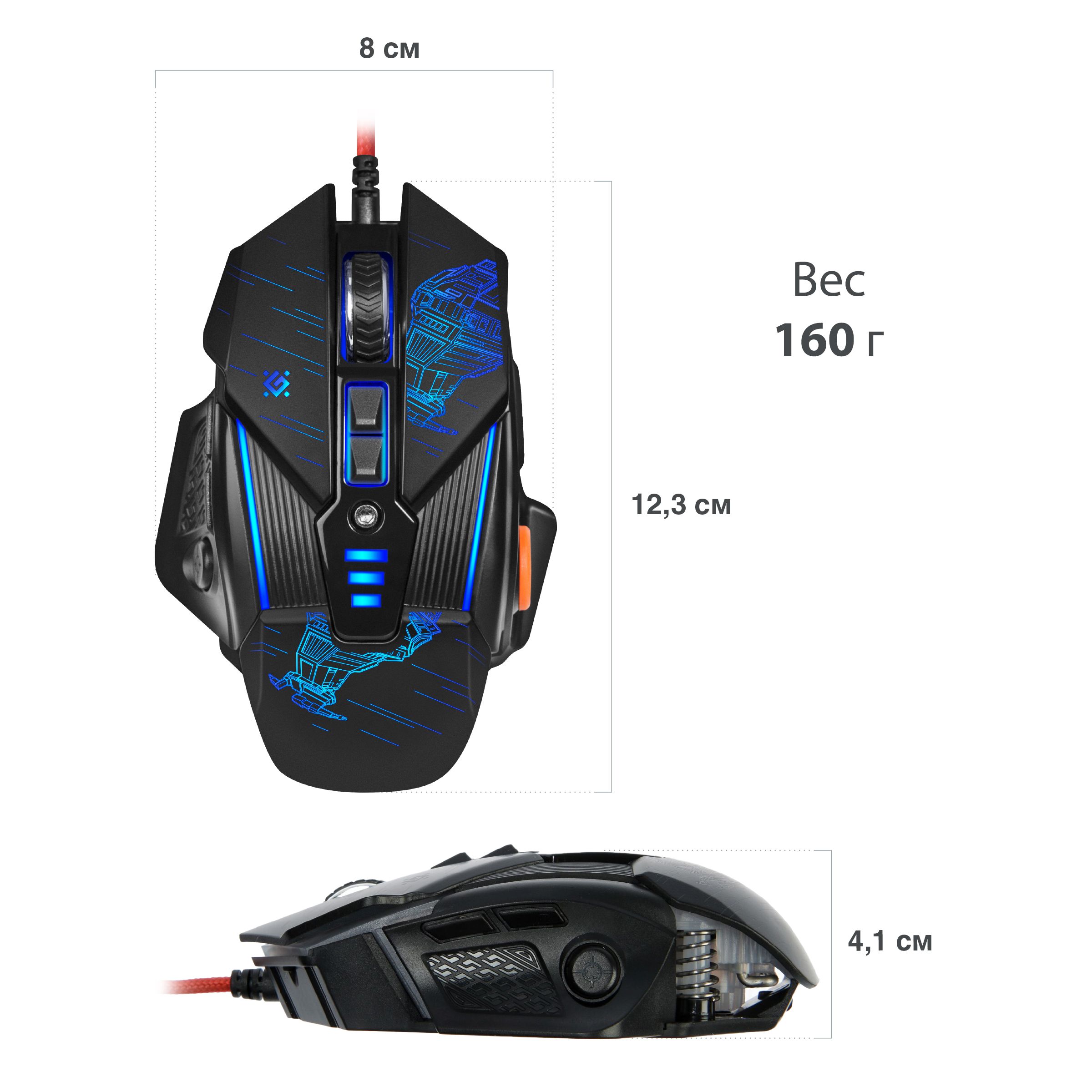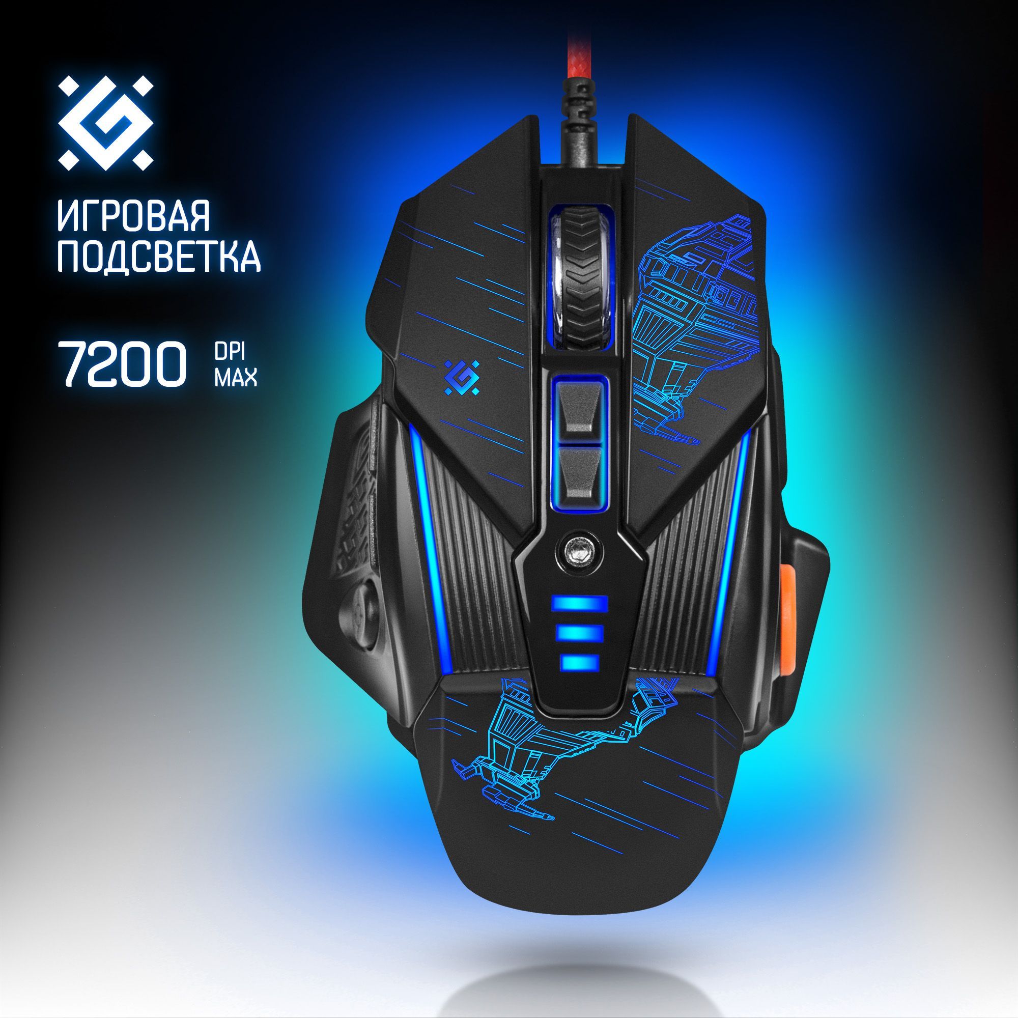 Игровая мышка для компьютера Defender sTarx 8 кнопок и грузики 7200 dpi