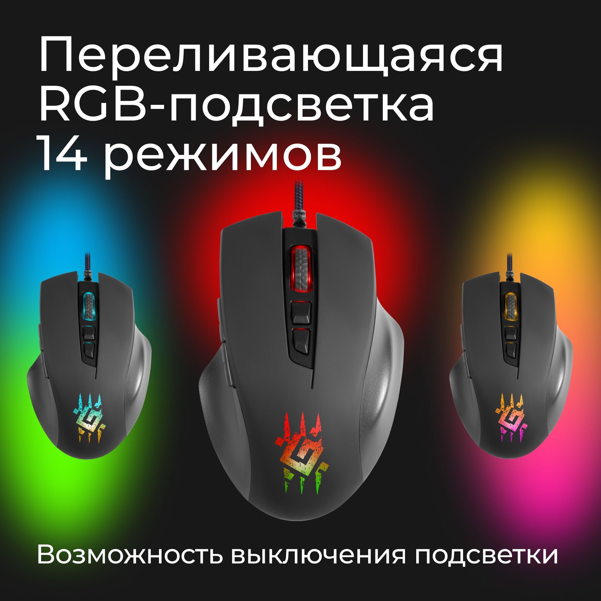 Игровая мышка для компьютера Defender Wolverine RGB 7 кнопок 12800 dpi
