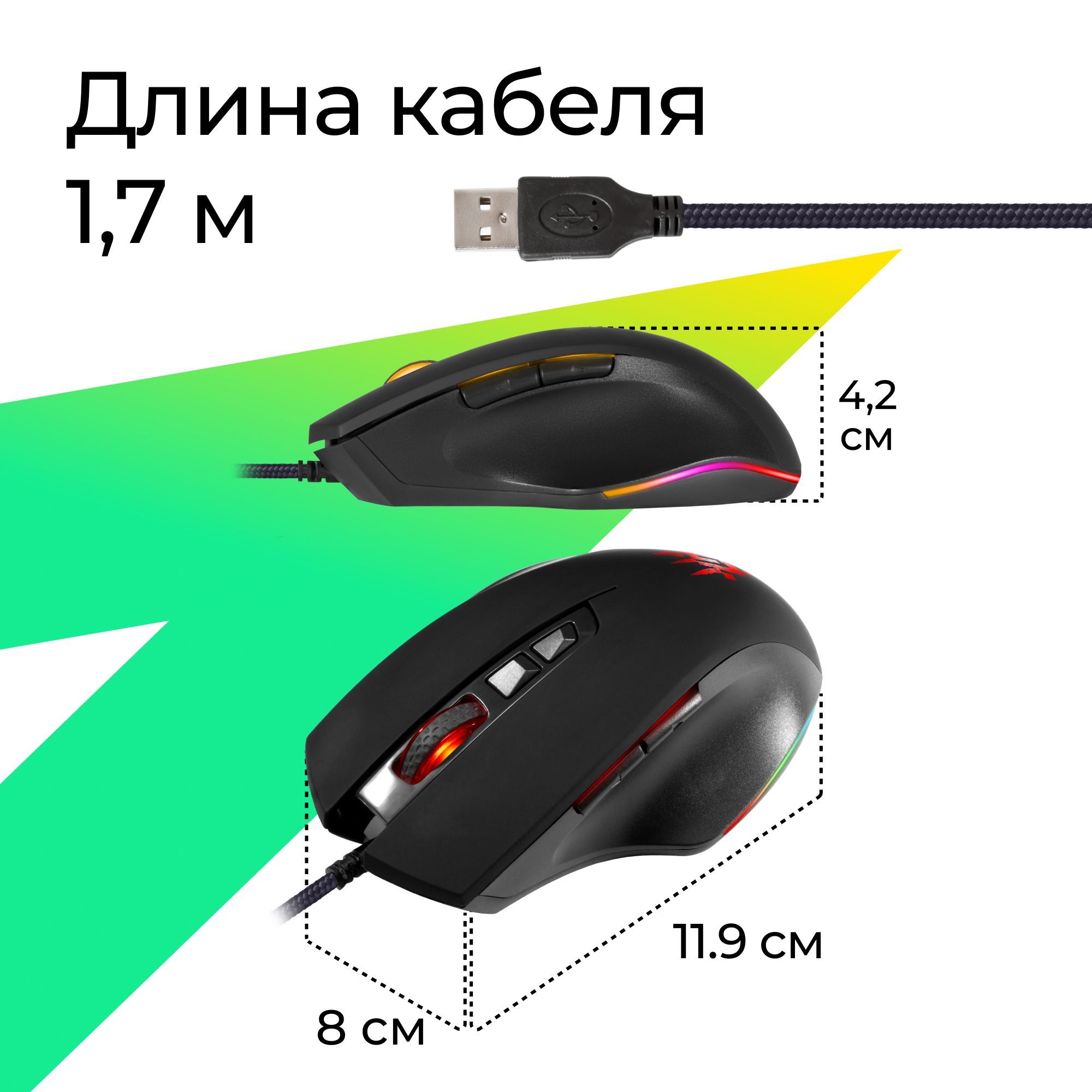 Описание: Игровая мышь Defender Wolverine GM-700L RGB, 7 кнопок, 12800dpi: