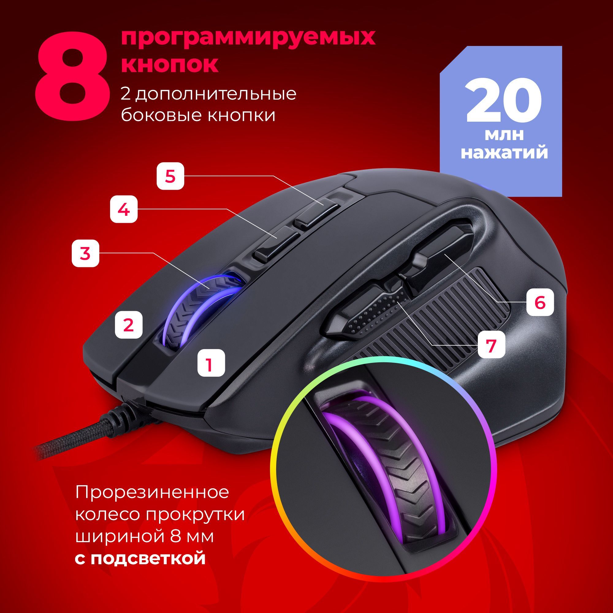 Описание: Профессиональная мышь с удобным захватом и отличным сенсором PixArt 3327. Подставка для большого пальца, эргономичный дизайн, настраиваемая RGB подсветка - делают эту мышь прекрасным выбором для требовательного геймера!