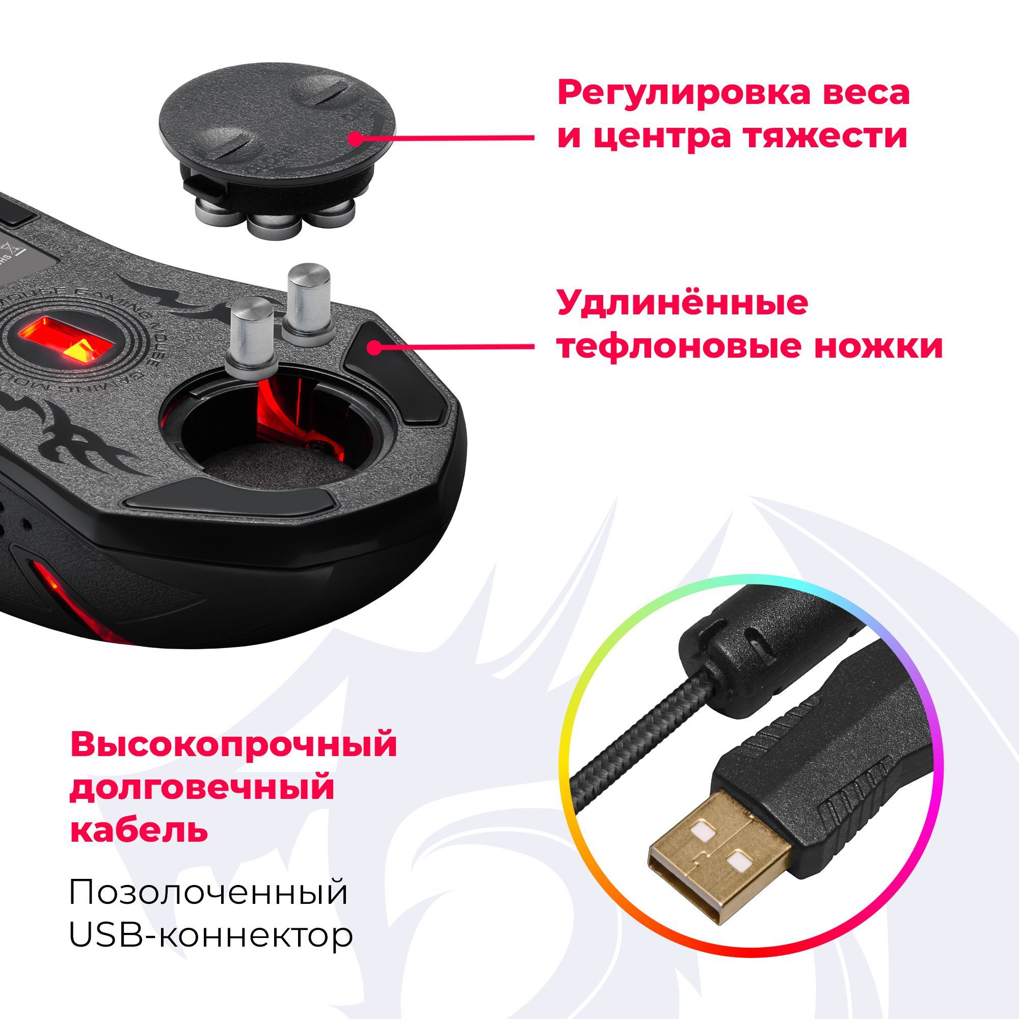 • Высокоточный оптический сенсор. Сенсор игровой мыши 3317IC позволяет выбрать разрешение с 400 до 7200 DPI, на лету изменяя скорость движения курсора по экрану.