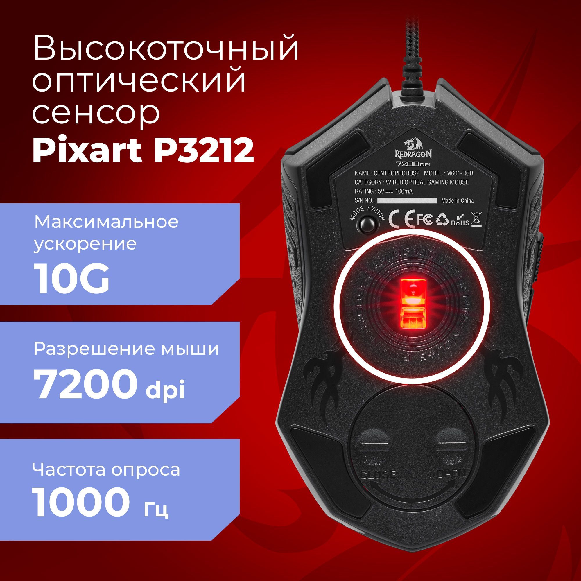 Игровая мышка для компьютера Redragon Centrophorus 2 6 кнопок 7200 dpi
