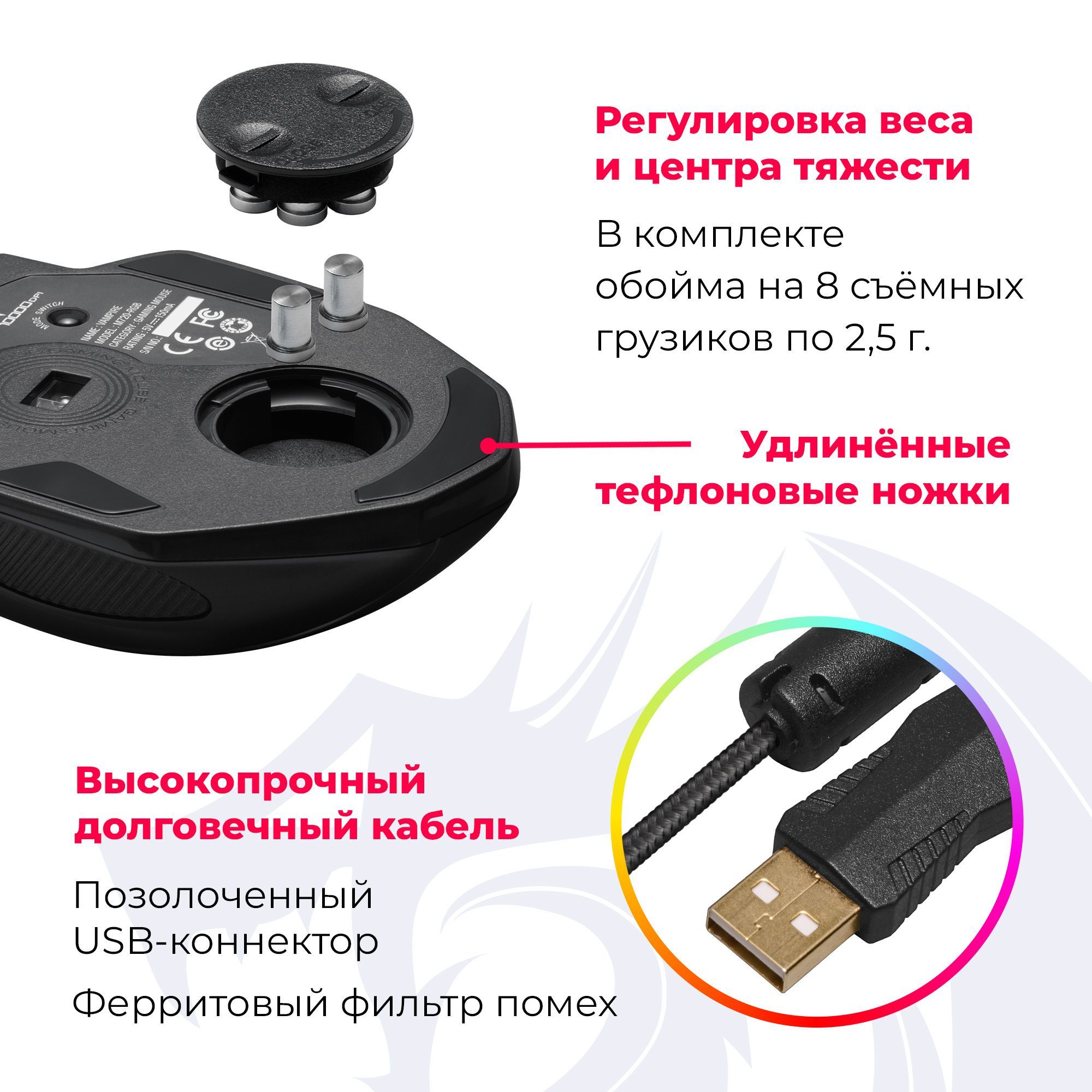 • Грузики для регулировки веса мыши.