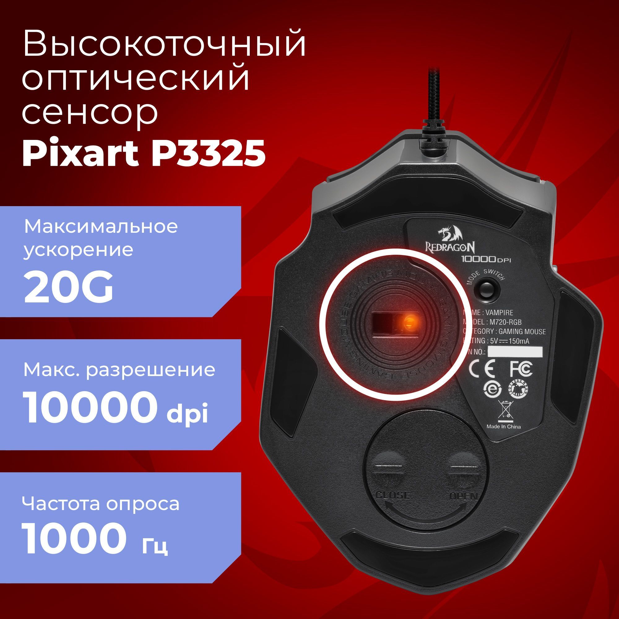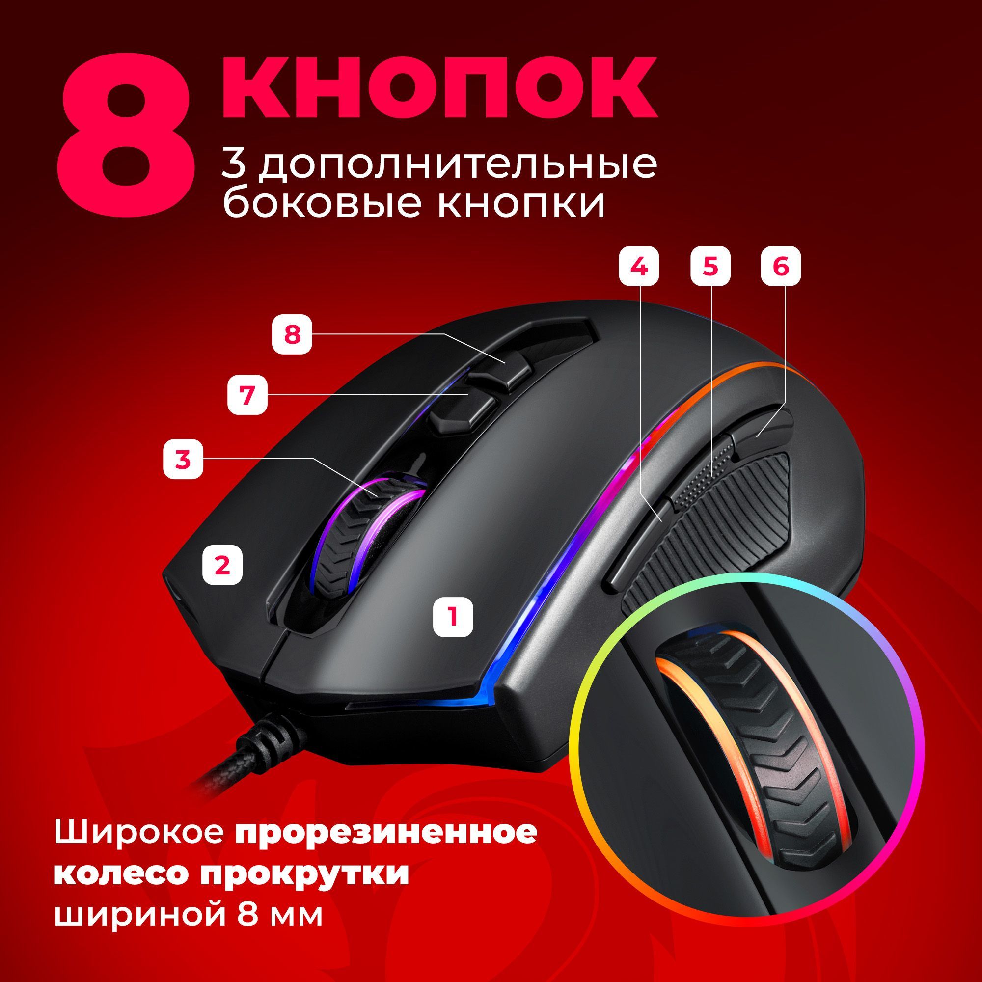 Игровая мышка для компьютера Redragon Vampire 8 кнопок 10000 dpi