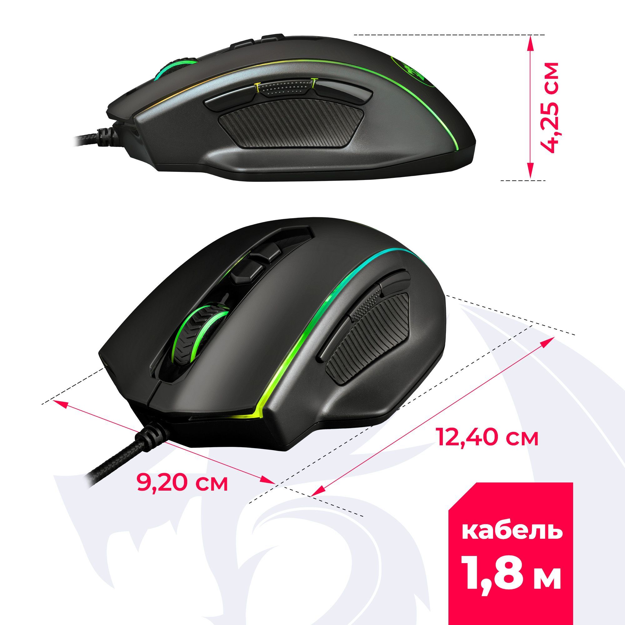 Описание: Проводная игровая мышь Redragon Vampire с динамической подсветкой - идеальный манипулятор для большой и средней руки. Удобный захват и приятное покрытие, в комплекте грузики для настройки веса мыши. Сенсор Pixart P3325, качественные переключатели и программное обеспечение с широкими возможностями настройки для опытного геймера.