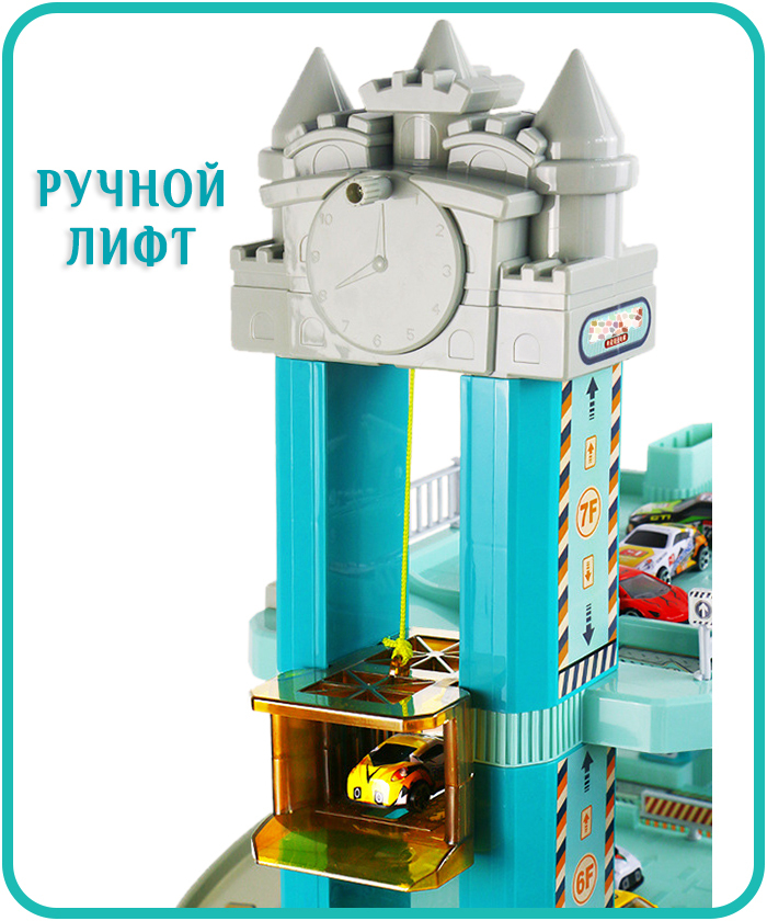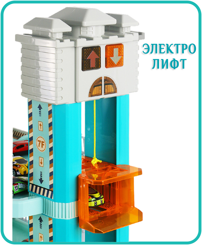 Игровая парковка высокая 97 см "Сити Паркинг" 6 уровней - 2 лифта (электро и ручной), свет, звук и машинки