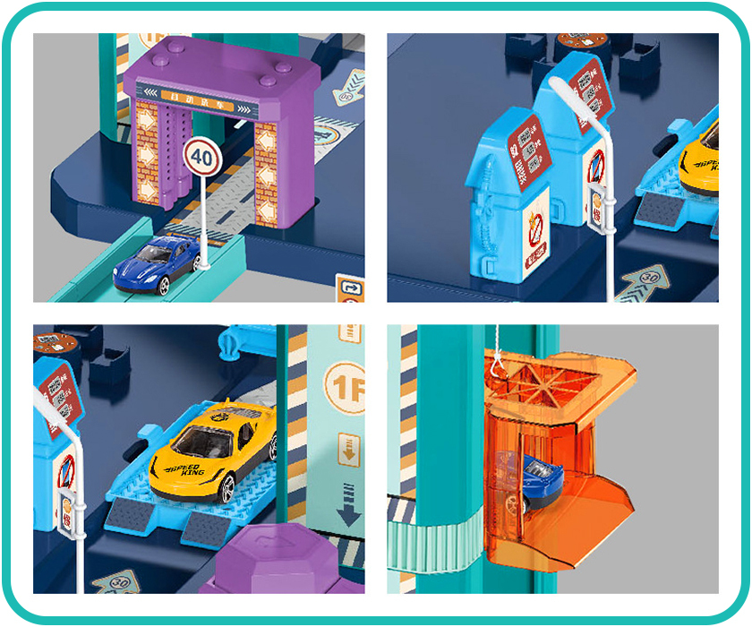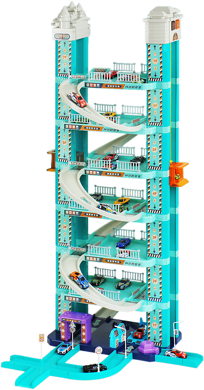 Детская игровая 6-уровневая парковка арт. "A333-253D" изготовлена из прочной безопасной пластмассы ABS. Отдельные сегменты дороги надёжно скрепляются специальными зацепами-соединителями.