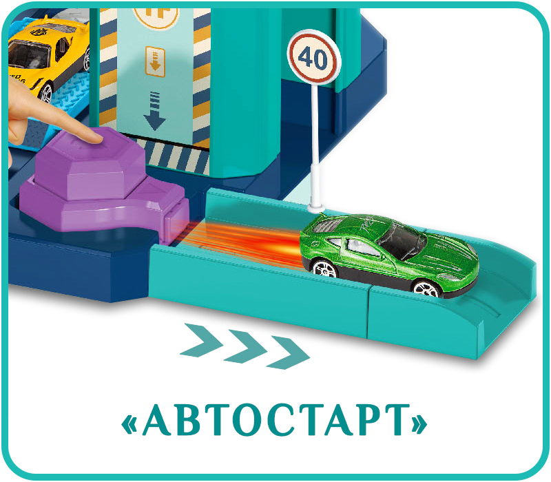 Игра "Кто дальше?": при нажатии на кнопку "Автостарт" специальный мини-поршень с силой толкает машинку. Чья машинка дальше уехала - тот и выиграл!