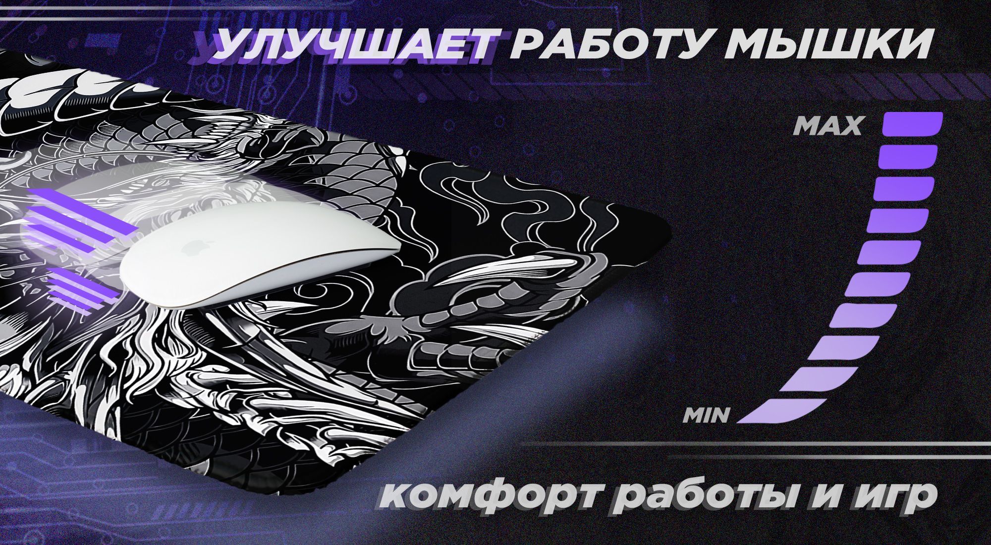 Обработанный крайПрошитые края делают коврик для мышки большой более долговечным, а яркий качественный принт дополнит ваш рабочий стол и дизайн комнаты.Поверхность улучшает скольжение мышкиЗа счет качественной улучшенной поверхности коврика упрощается качество скольжения мышки по коврику, помогая в работе и в играх.Оптимальный размер Размер компьютерного коврика 78 см на 28 см. Это займет большую часть стола, защитив его от царапин и повреждений. На столе можно разместить и мышь и клавиатуру.