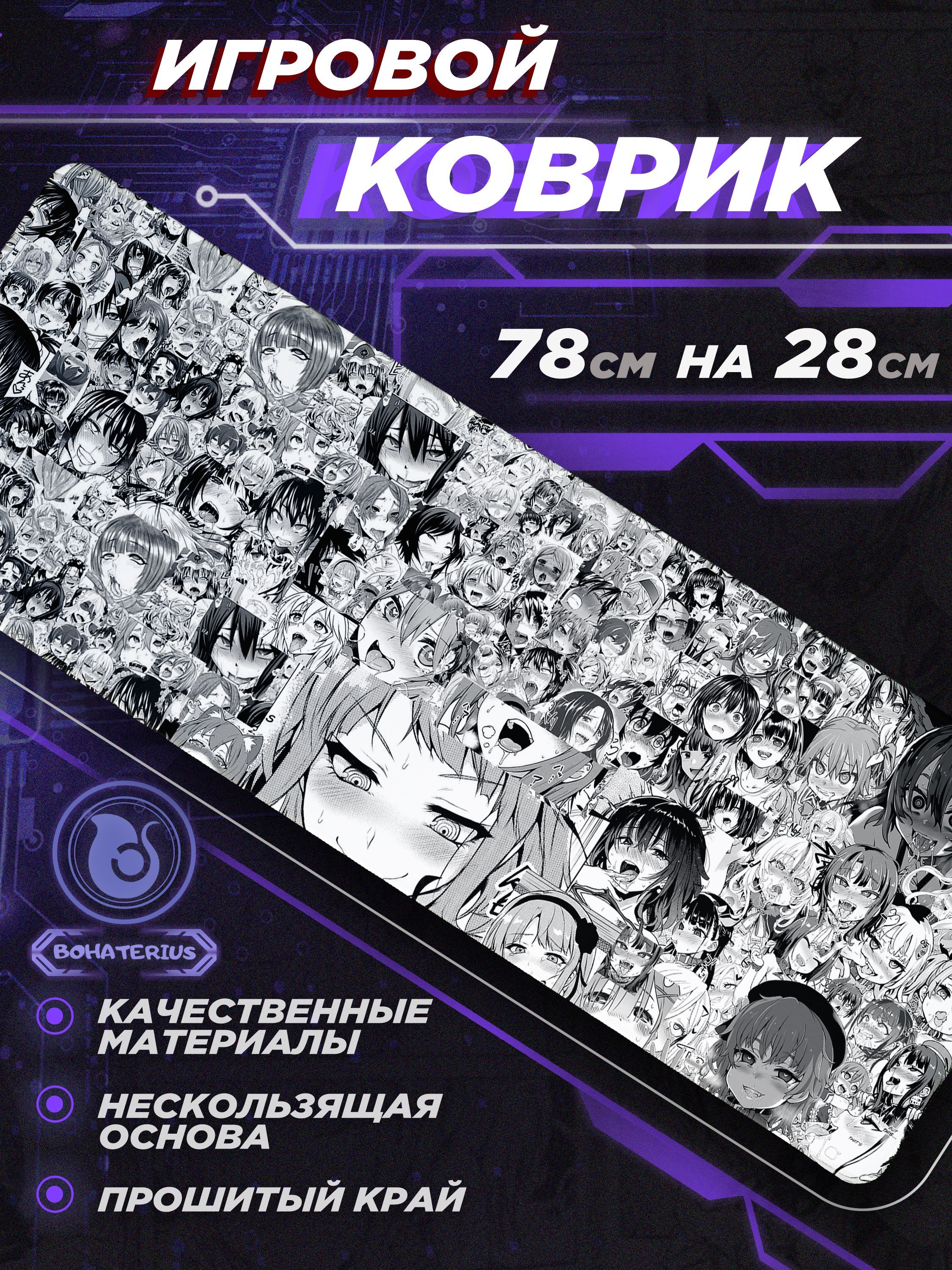 Игровая поверхность / Игровой коврик для мыши / Компьютерный коврик для мышки / Большой коврик на стол / Аниме / Манга / Ахегао / 80 см