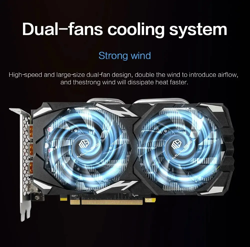 • Двойной Тип Вентилятора Охладителя :Обеспечьте прохладу и эффективную работу видеокарты с кулером с двойным вентилятором.